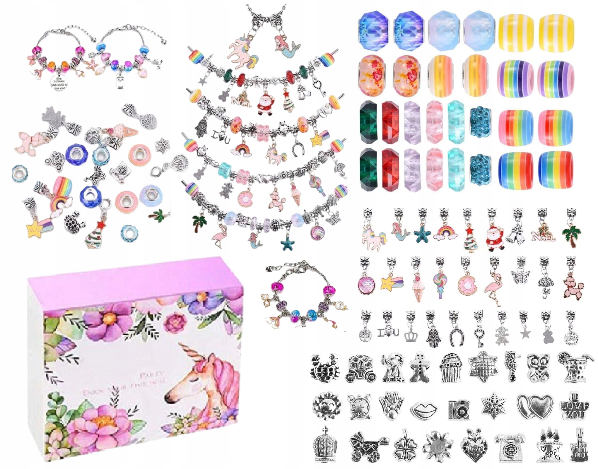 ⭐Містить 27 великих намистин , 28 підвісок, 28 різнокольорових намистин, 2 браслети та 1 мотузка для намиста, 1 коробка, всього 87 штук