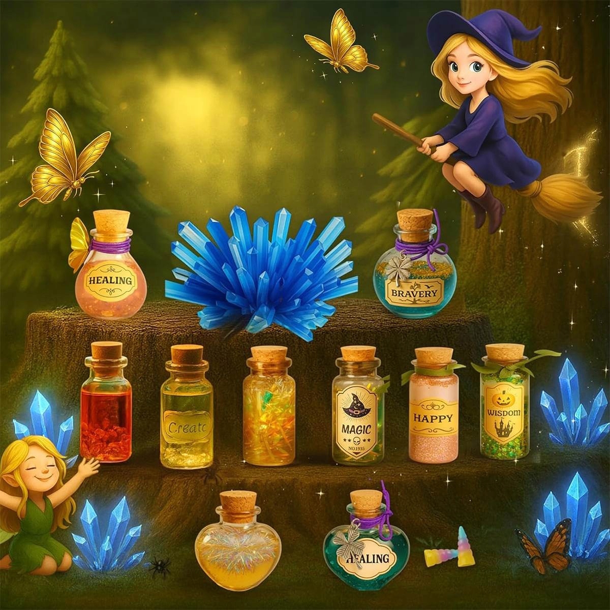 ⭐ Зберігання - готові зілля можна розмістити на полиці в прикріпленій коробці - вони виглядають як справжні зілля з казок.