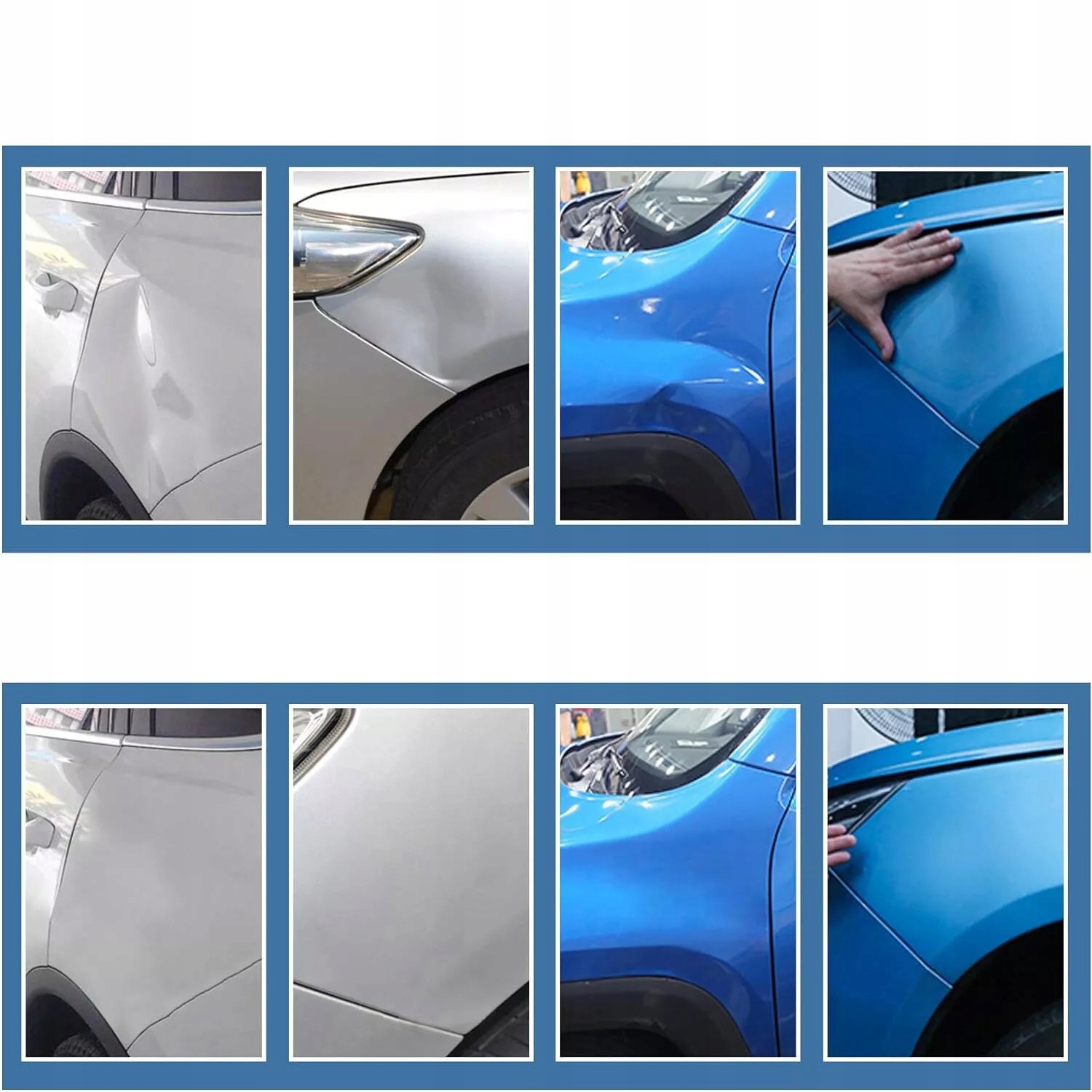 2. Широке застосування: набір для ремонту вм'ятин включає 18 самоклеючих смужок, що робить його ідеальним для видалення вм'ятин і пошкоджень від граду. Цей інструмент ідеально підходить для вантажівок, автомобілів, кузовів мотоциклів, холодильників, дверей тощо.