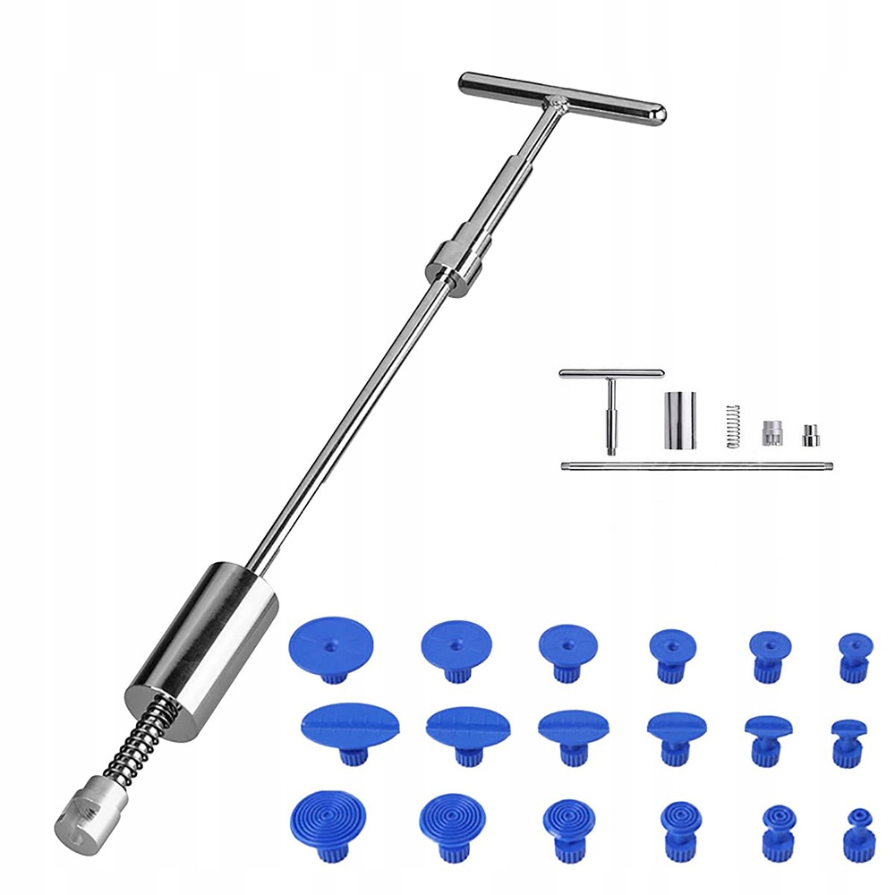 1. Високоякісний матеріал: Знімач вм’ятин з Т-подібною планкою та молотком виготовлений з нержавіючої сталі. Усі 18 самоклеючих вкладок виготовлені з високонадійного пластику.