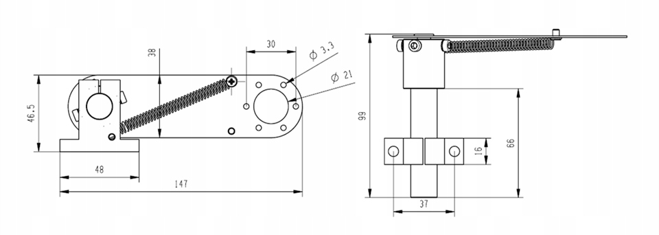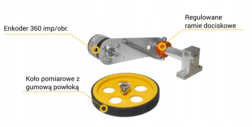 Алюмінієвий вимірювальний кронштейн RR1, призначений для енкодерів Termipol HY38. Рука оснащена пружиною, що виключає ковзання під час вимірювання, і додатковою регульованою віссю.