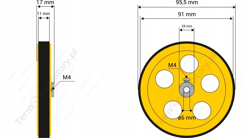 - Зовнішній діаметр: Колесо: 95,5 мм