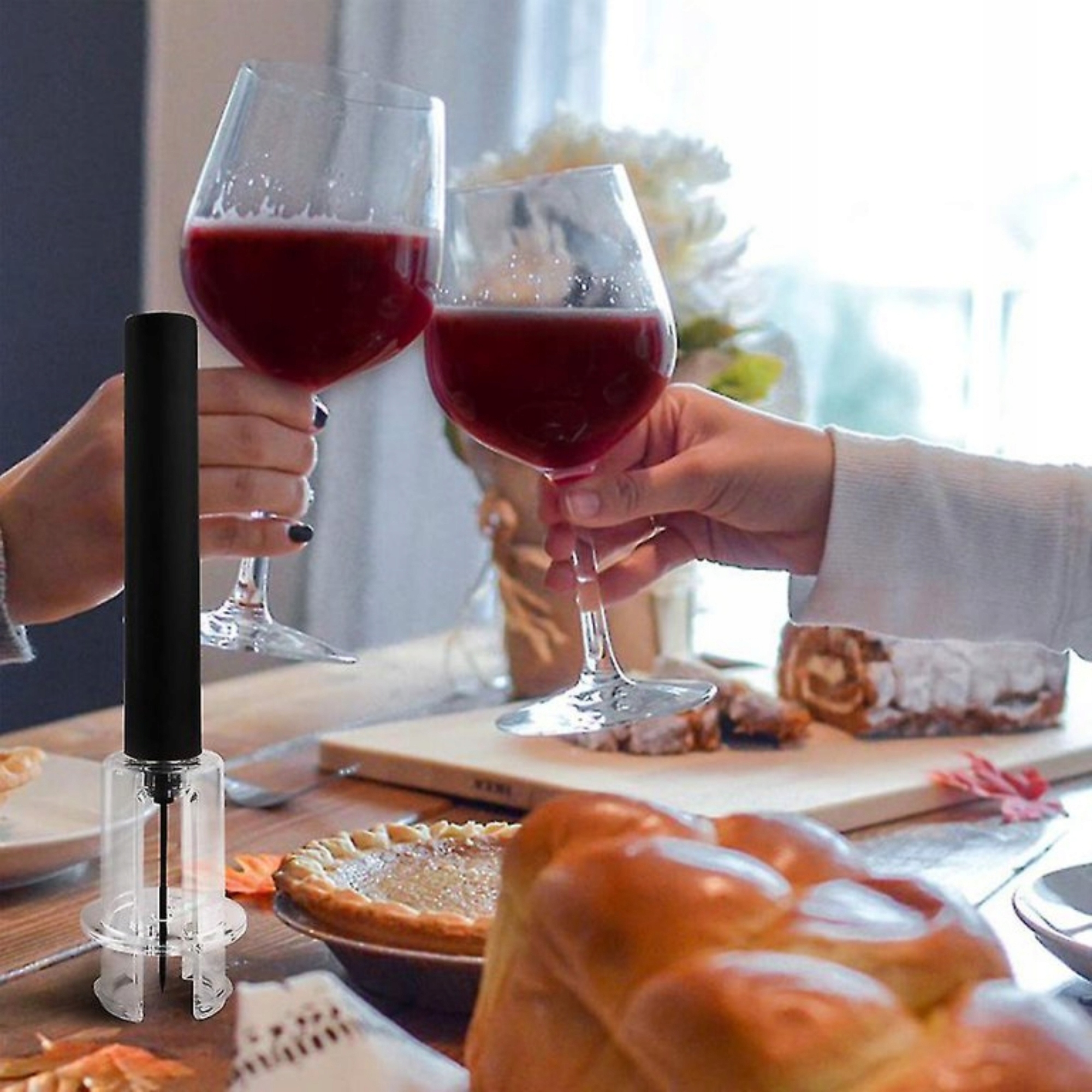 Цей набір 4-в-1 включає відкривачку з повітряним насосом, різак для фольги, наливну систему з аератором і вакуумну пробку для неперевершеної дегустації вина.