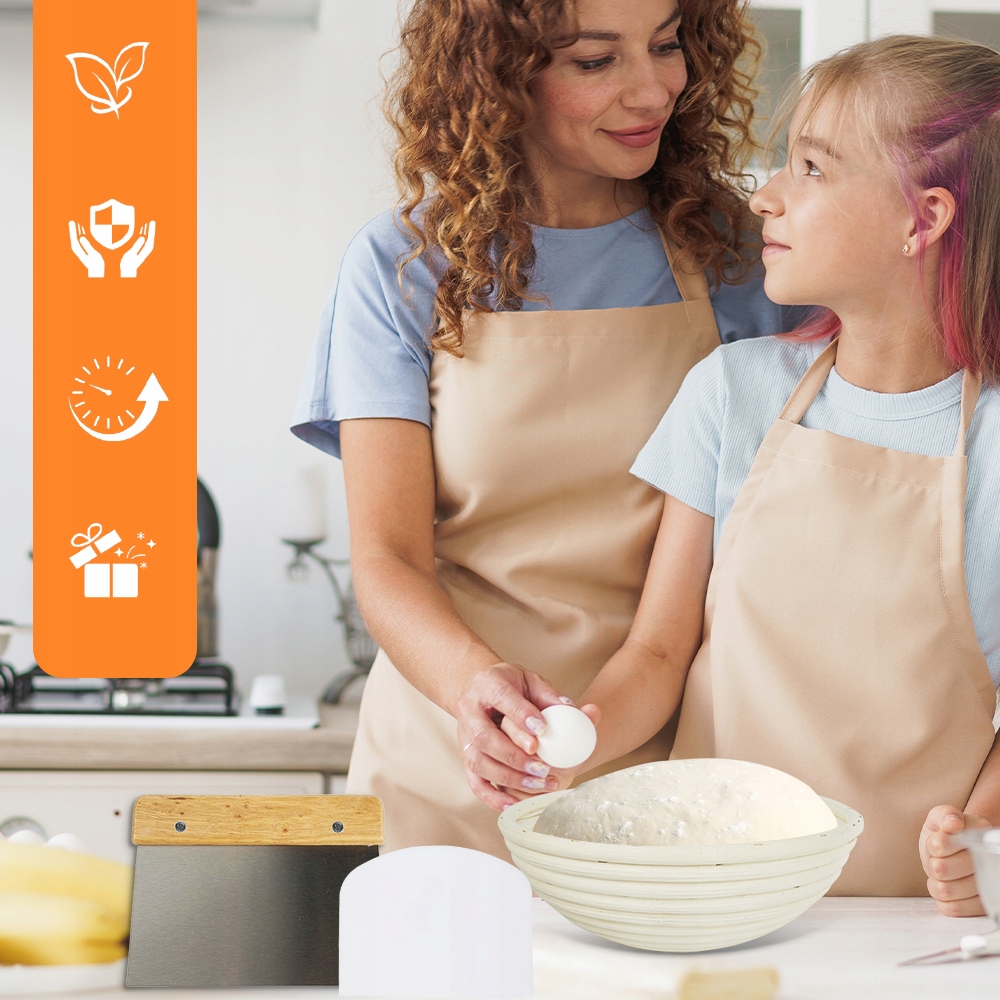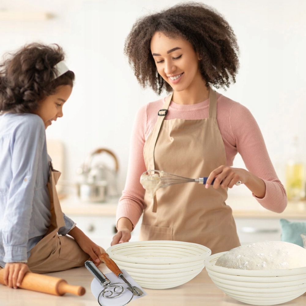 🥨🥨🥨 Усе, що вам потрібно:Наш набір для закваски включає все, що вам потрібно для випікання смачного золотисто-коричневого хліба. Аксесуари, що входять у комплект, включають датський віночок для тіста, який дозволяє перемішувати вологе тісто в 3 рази швидше, ніж за допомогою традиційної лопатки. Скребок для тіста з нержавіючої сталі для різання та формування хліба. Різальний ніж із5 додатковими лезами, які допомагають тісту піднятися. Нарешті, 2 тканинні вставки, щоб вирівняти поверхню кошика та запобігти прилипанню тіста до кошика.