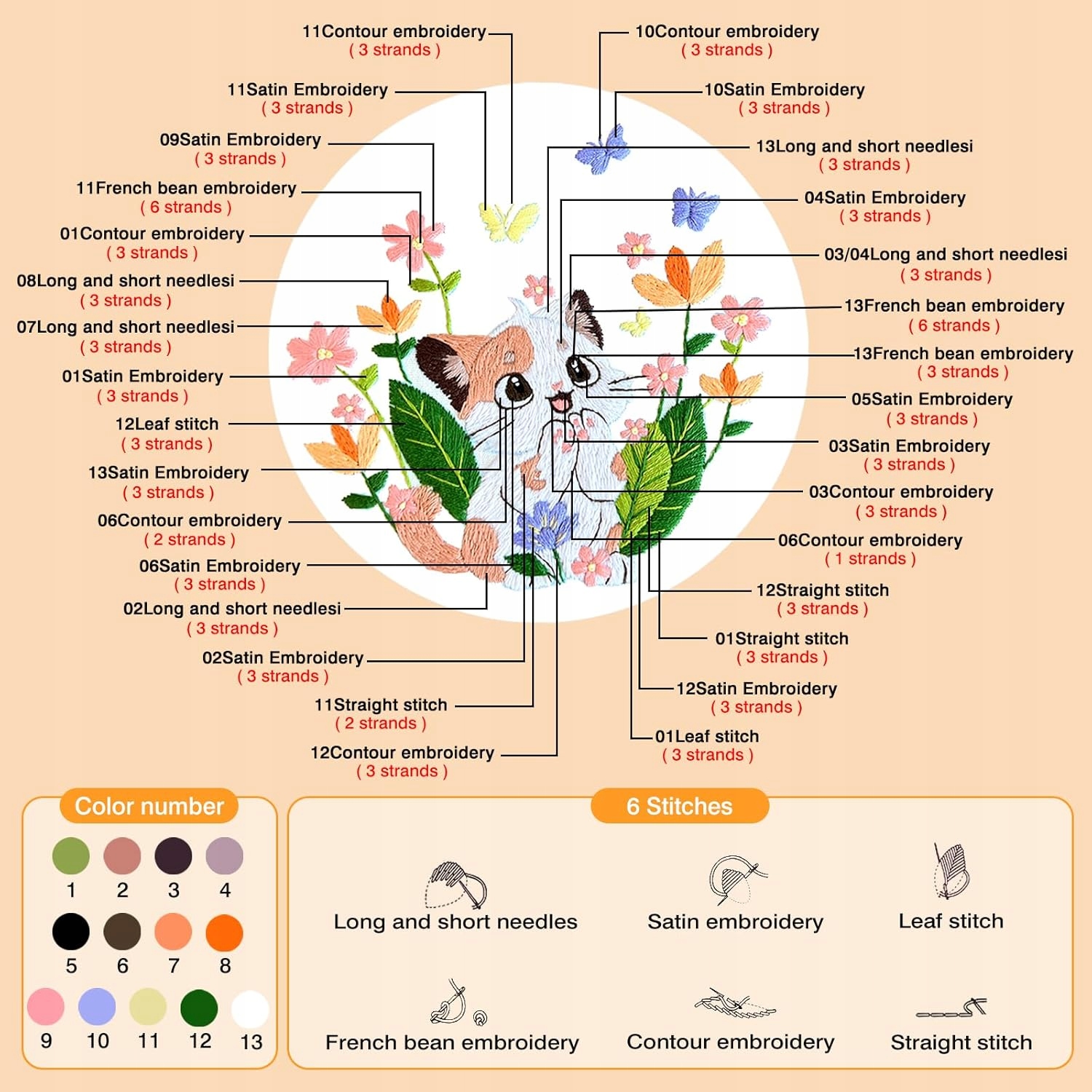 ✅ У набір входить інструкція для вишивання кожного з малюнків. Містить поради та малюнки, які шви використовувати та як їх робити.