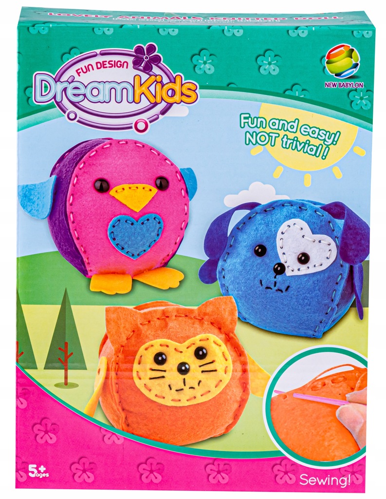 Набір містить безпечні інструменти, такі як велика пластикова голка, яка підходить для маленьких ручок. Усі елементи мають попередньо вирізані отвори для голки, що полегшує та захищає процес шиття.