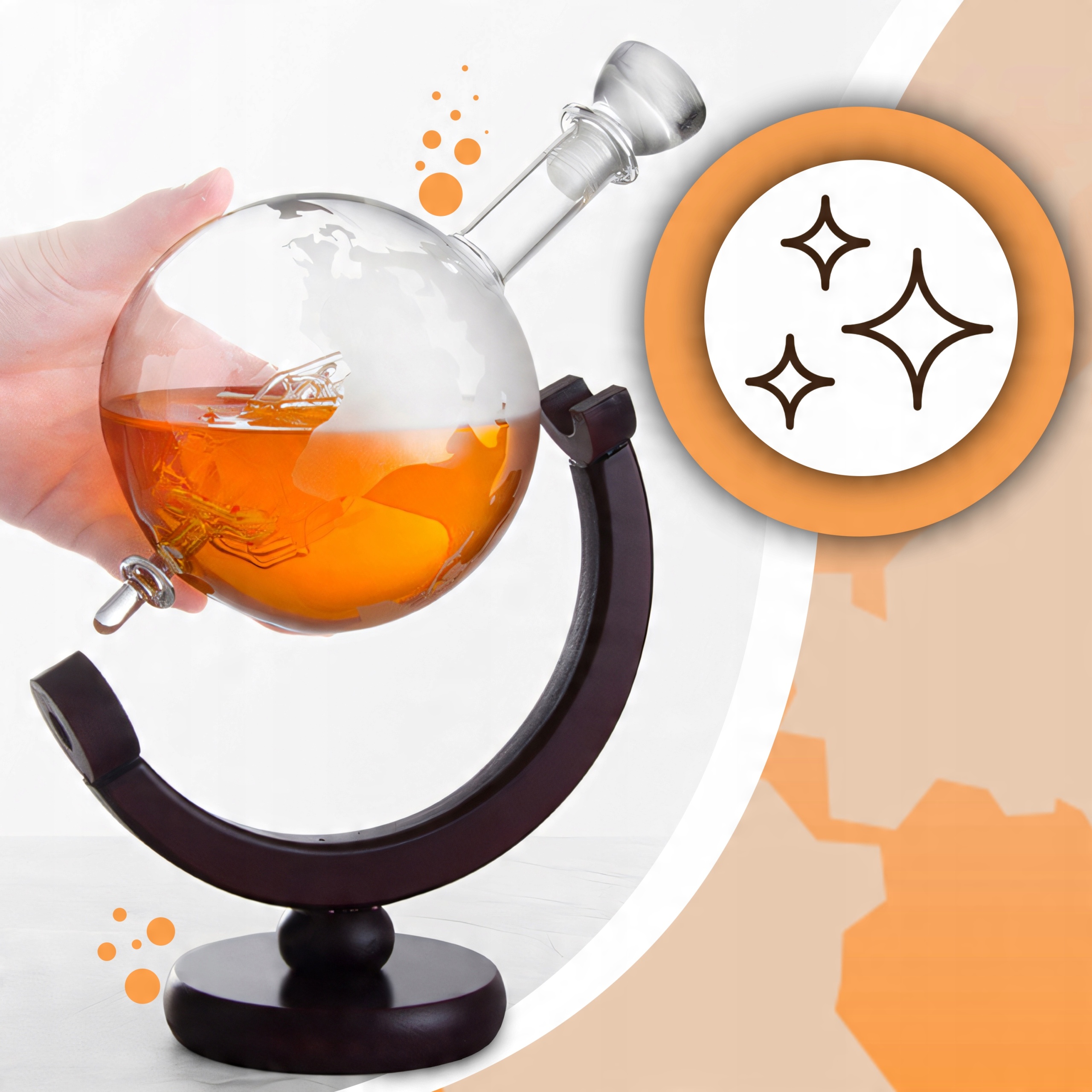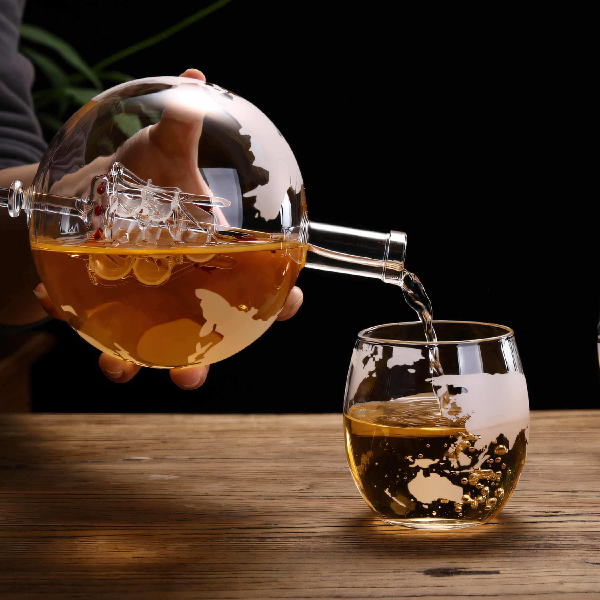 ⭐ ЕФЕКТ ГЛОБУСУ: графин у формі глобуса з унікальним гравіюванням вітрильного корабля з картою світу приваблює погляди та додає унікальний характер.