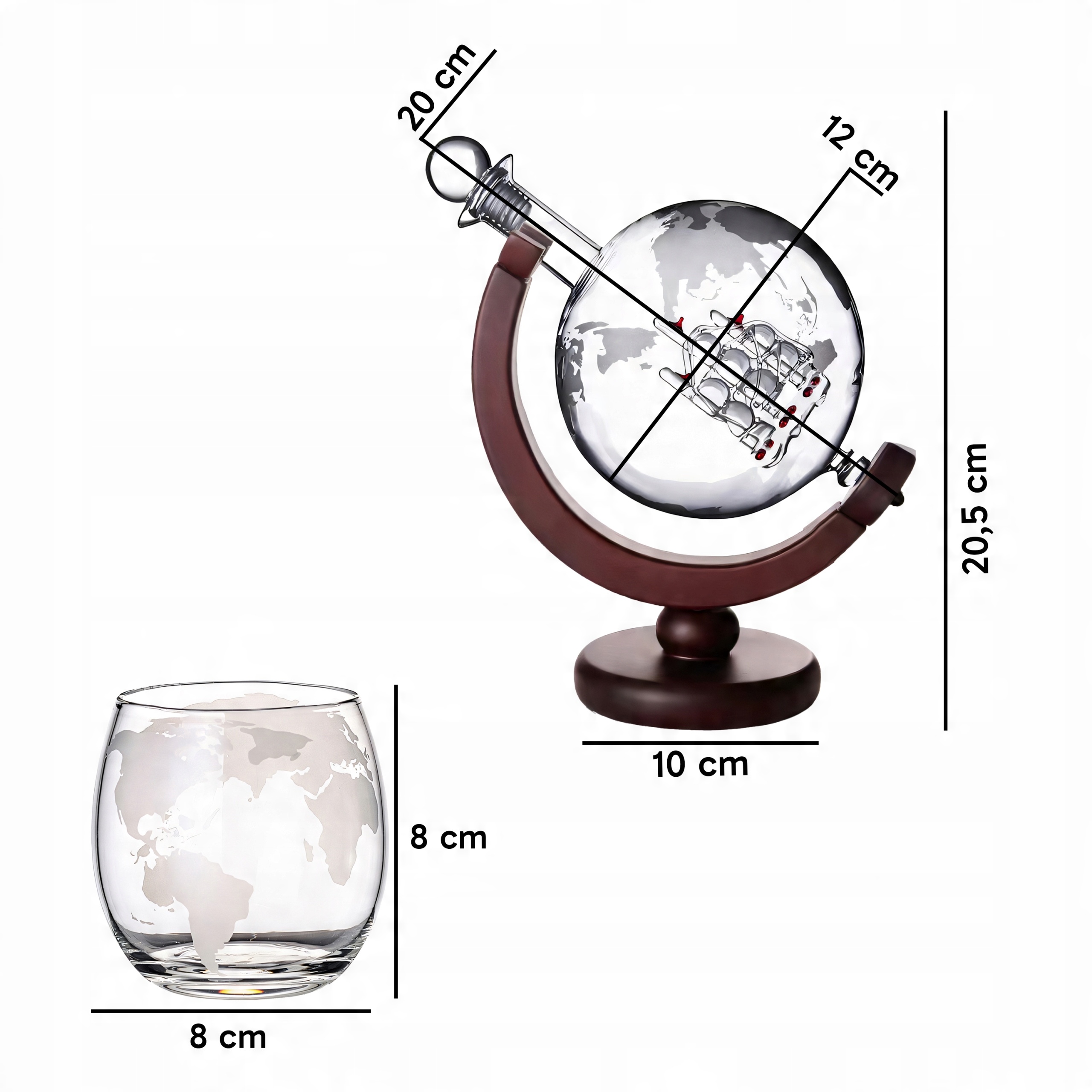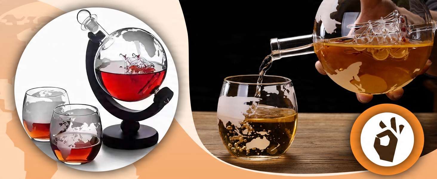⭐ ВЕЛИКИЙ НАБІР: Набір включає елегантний графин-глобус і дві склянки, які є ідеальним аксесуаром для подачі улюблених напоїв.