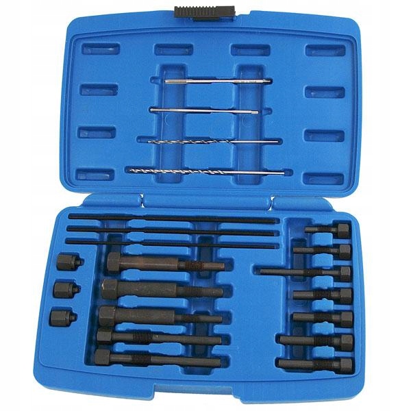 Набір дозволяє демонтувати зламану нитку розжарювання M8x1.0 - M10x1.0 - M10x1.25. Ремонт можна проводити без демонтажу головки - в такому випадку замість відповідної форсунки необхідно встановити пневматичний адаптер.