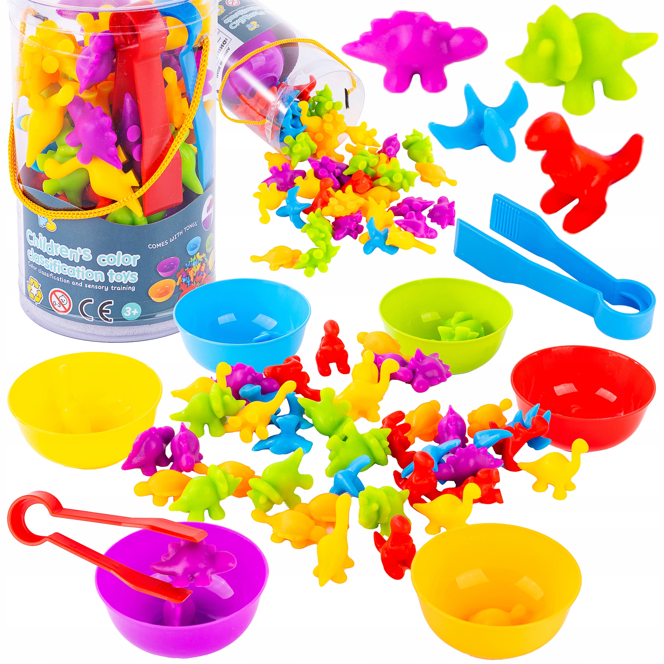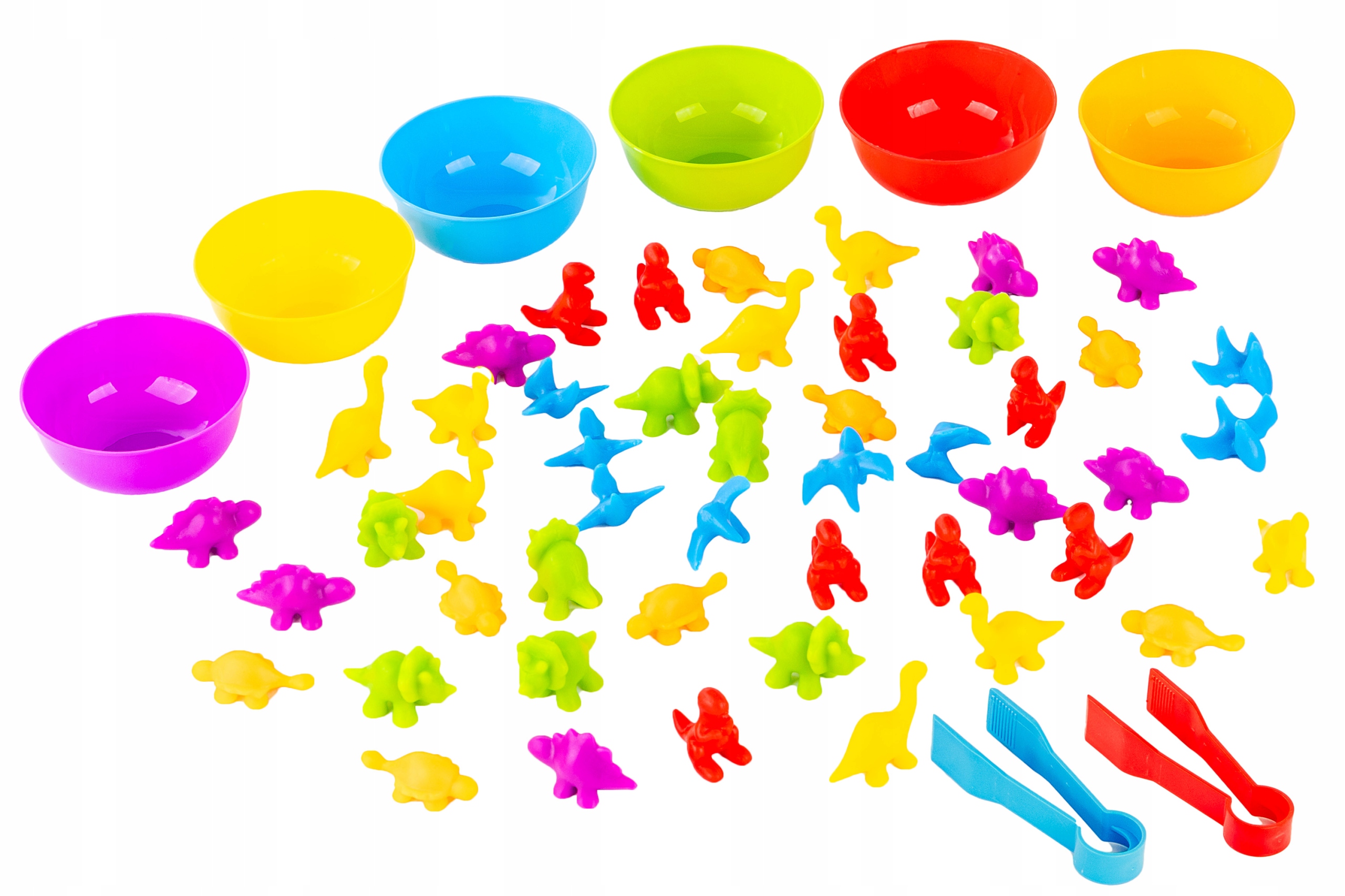 Набір для навчання цифрам і кольорам «Гра Монтессорі Динозаври» - це творча та розвиваюча іграшка, яка переносить дітей у захоплюючий світ динозаврів, розвиваючи при цьому їх рахунок. і навички розпізнавання кольорів.