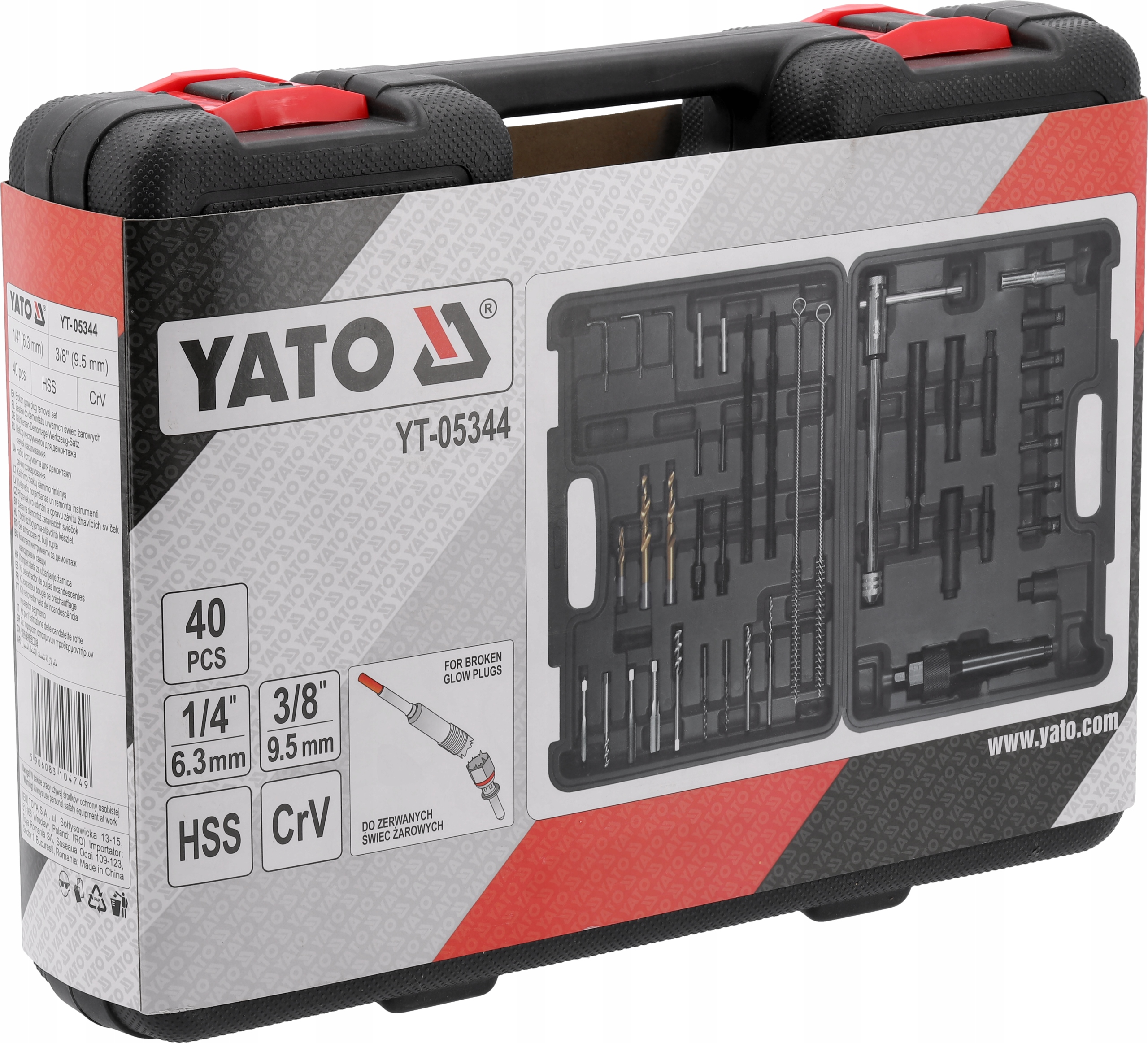 Набір YATO з 40 елементів для демонтажу зламаних або пошкоджених свічок розжарювання.