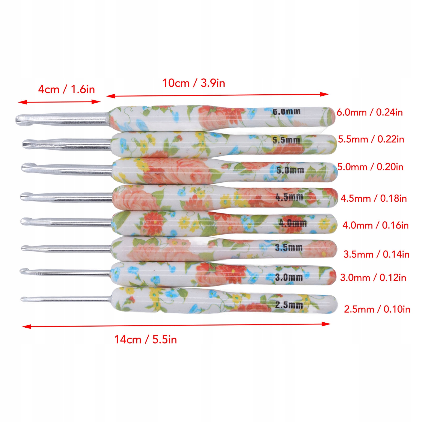 3. Різні розміри: різнокольоровий гачок, різні кольори підходять для різних розмірів спиць. Кожен гачок пронумерований, тому ви ніколи не заплутаєтеся.