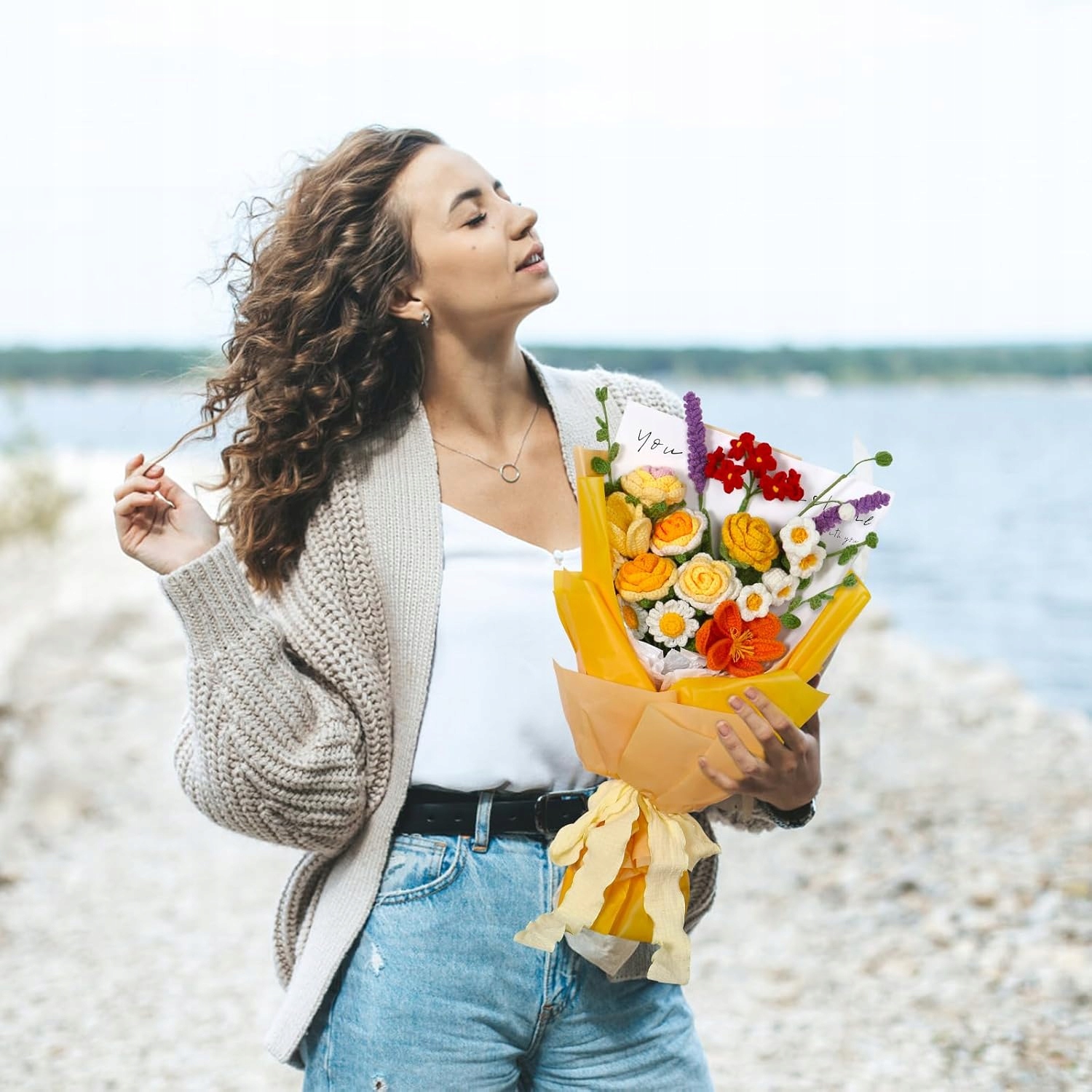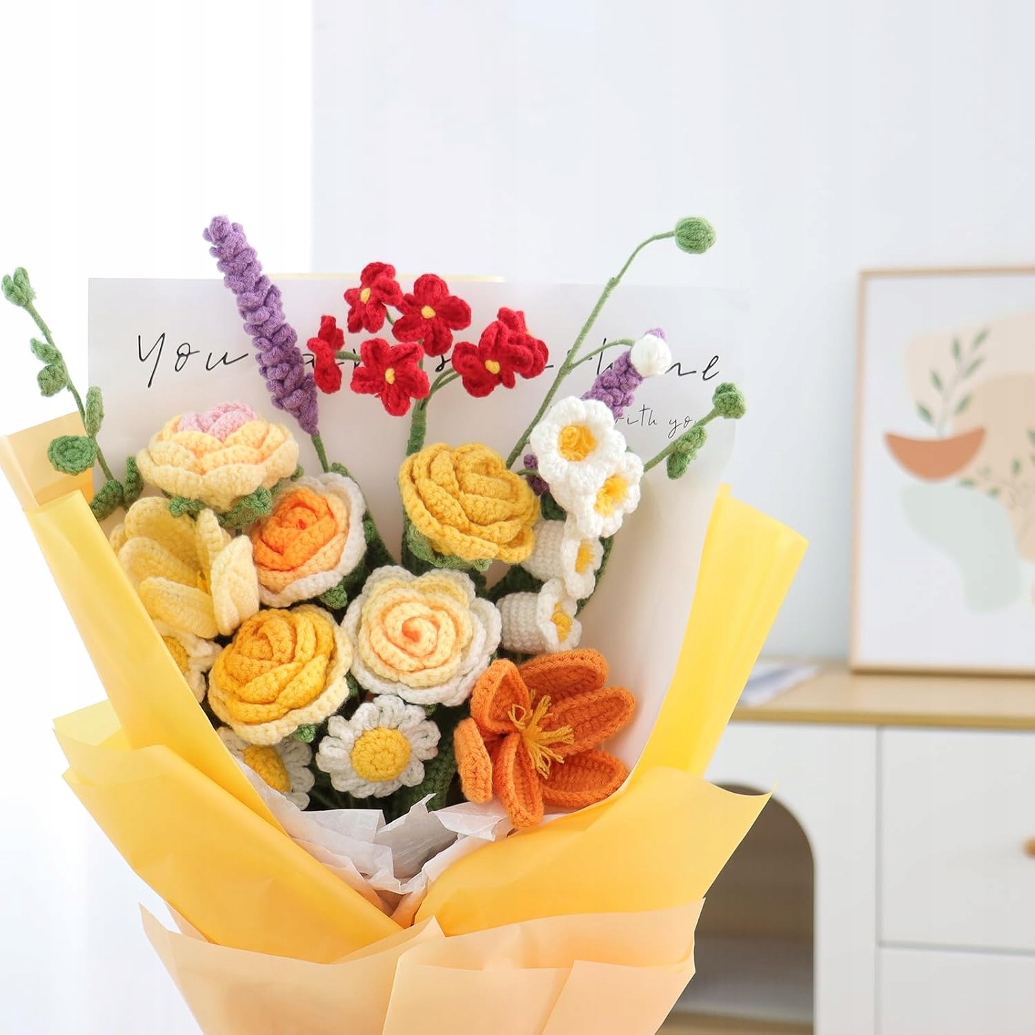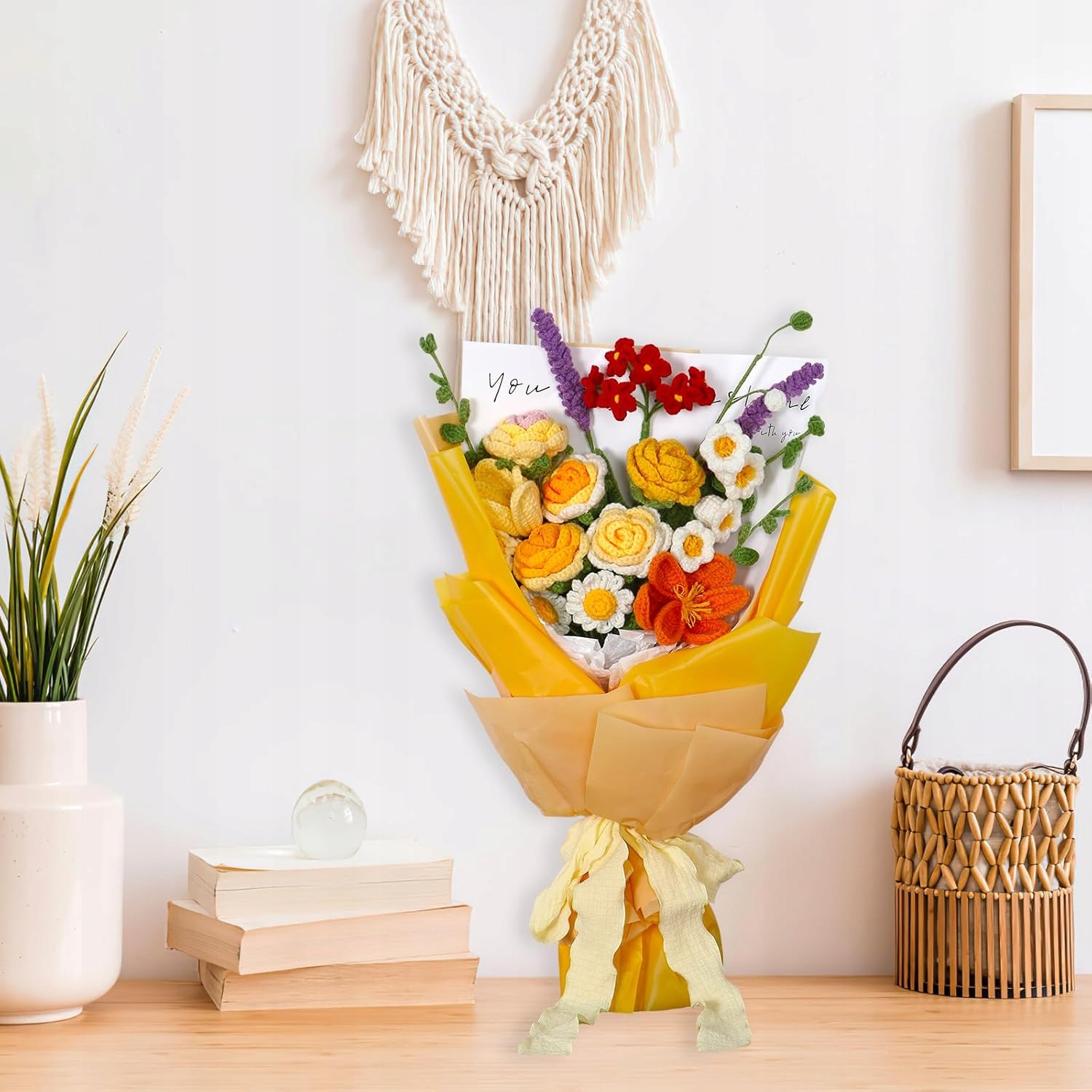 Цей зручний набір для в’язання гачком для початківців включає високоякісну пряжу, гачки для в’язання, спиці, навчальні матеріали та аксесуари. Усе, що вам потрібно для створення гарного букета жовтих квітів, міститься в одній коробці, що позбавляє вас від клопоту купувати продукти окремо.
