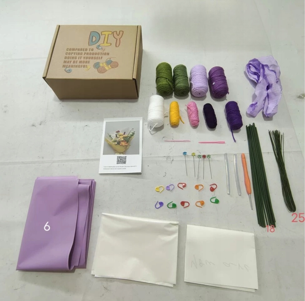 🧶Бавовняна пряжа м’яка, її нелегко розколоти та вицвіти. Тим часом ми надали достатньо обгорткового паперу, щоб ви могли створити унікальний набір для в’язання букетів гачком відповідно до ваших уподобань.