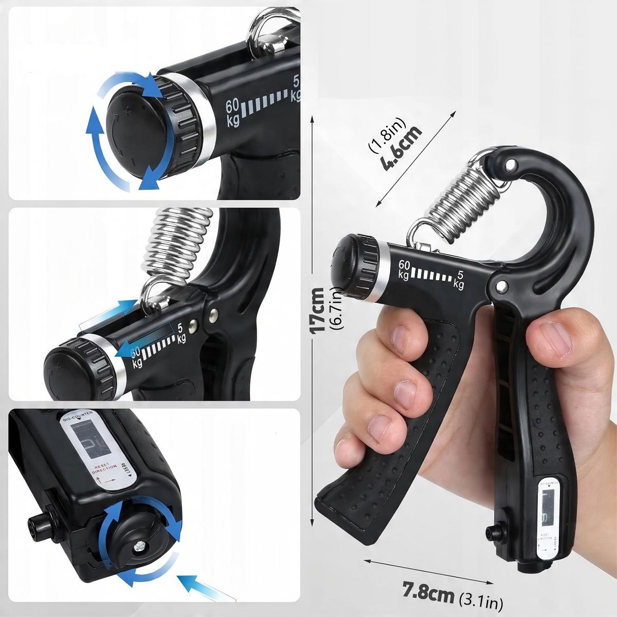 ✅【Тренажер для рук із функцією підрахунку】Наш тренажер для рук має вбудований лічильник, який записує, скільки рухів ви виконуєте під час кожної вправи. Натисніть і поверніть кнопку скидання, щоб відстежувати прогрес вправи. Тренажер також може регулювати опір (5-60 кг) відповідно до вашої сили.