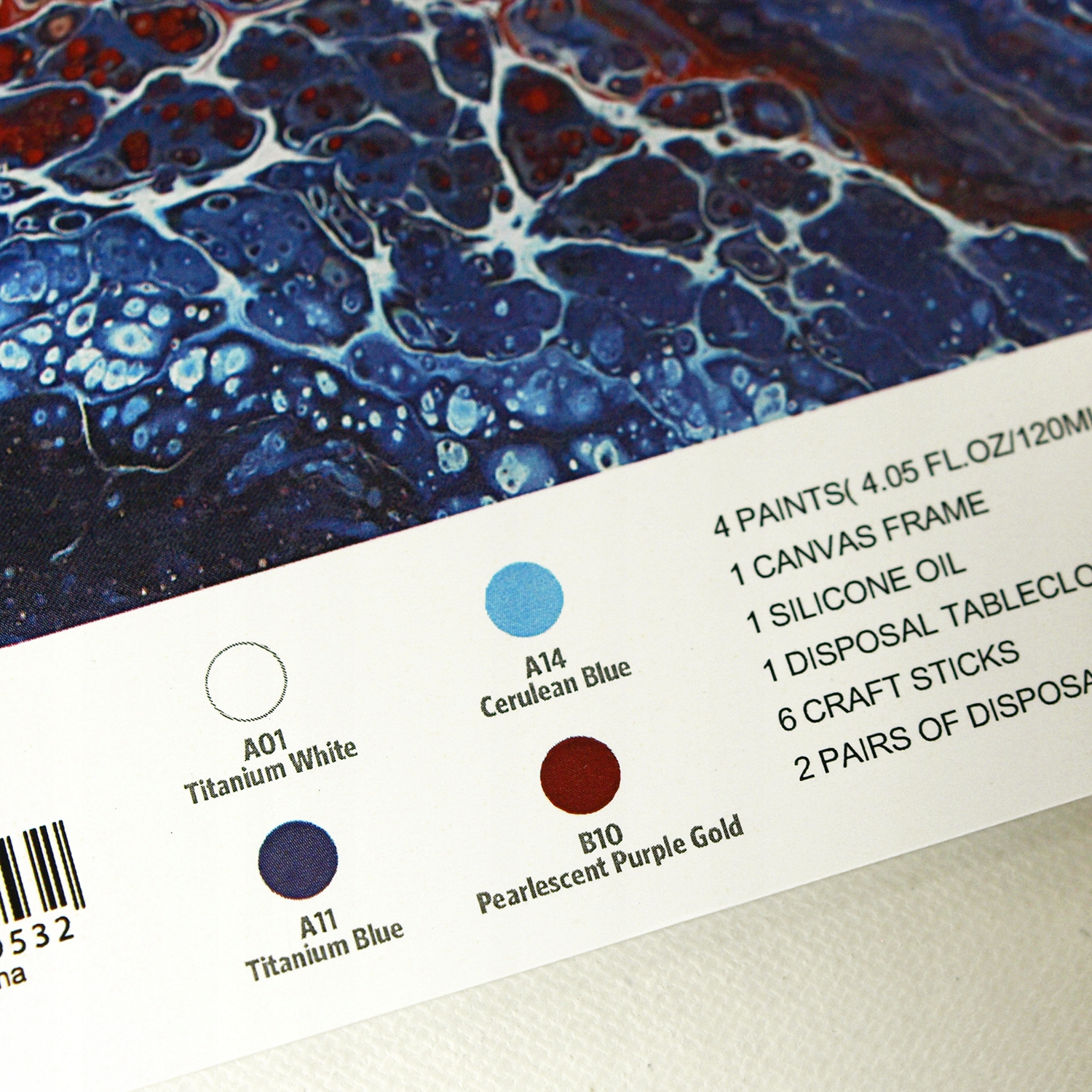 Просто налийте фарби на попередньо вибрану поверхню. Ви можете додати кілька крапель силіконової олії (входить в набір), щоб отримати ефект круглих плям, що розтікаються по поверхні.
