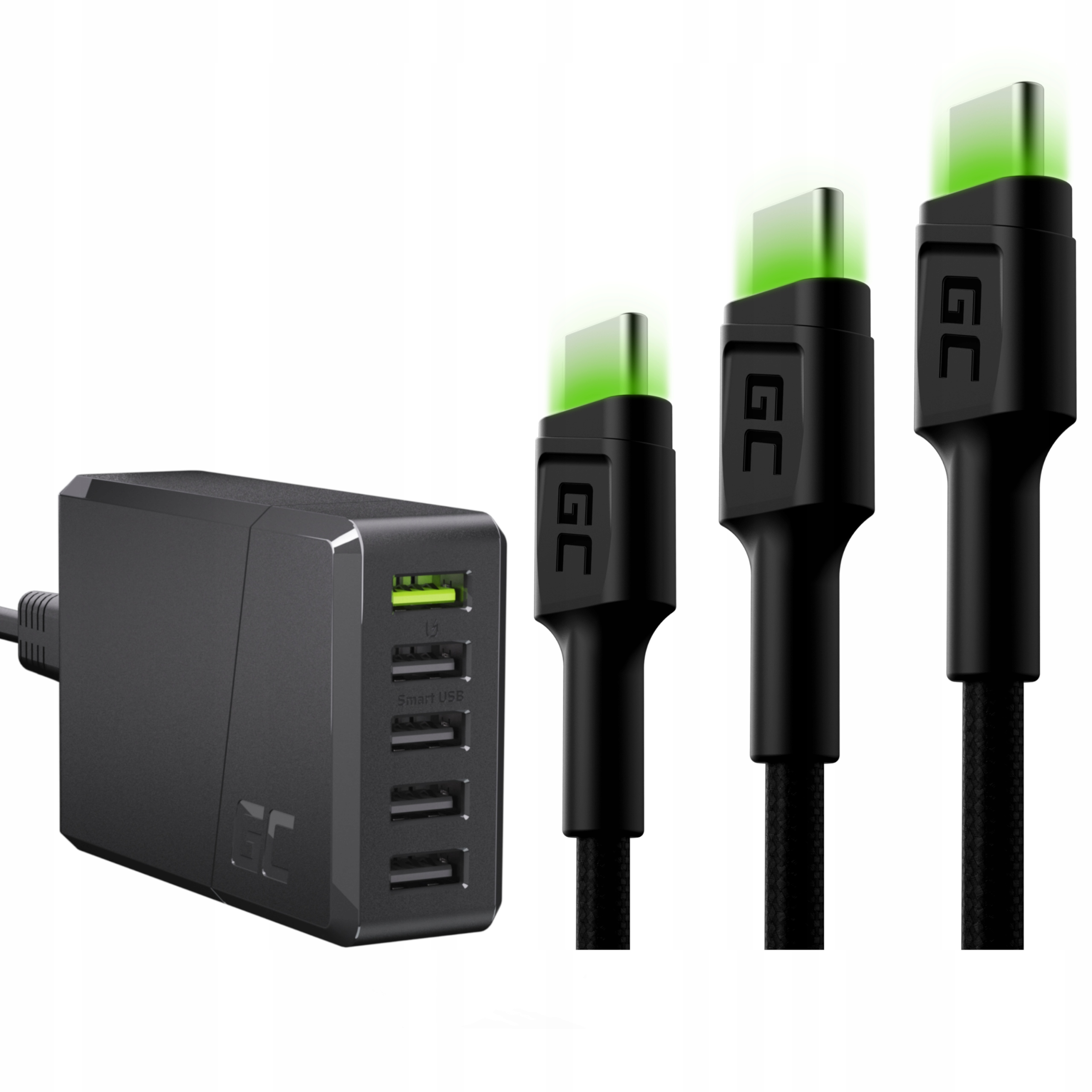 Набір для зарядки 5x USB зарядний пристрій + 3x LED USB кабель USB-C 0,3 м 1,2 м 2 м