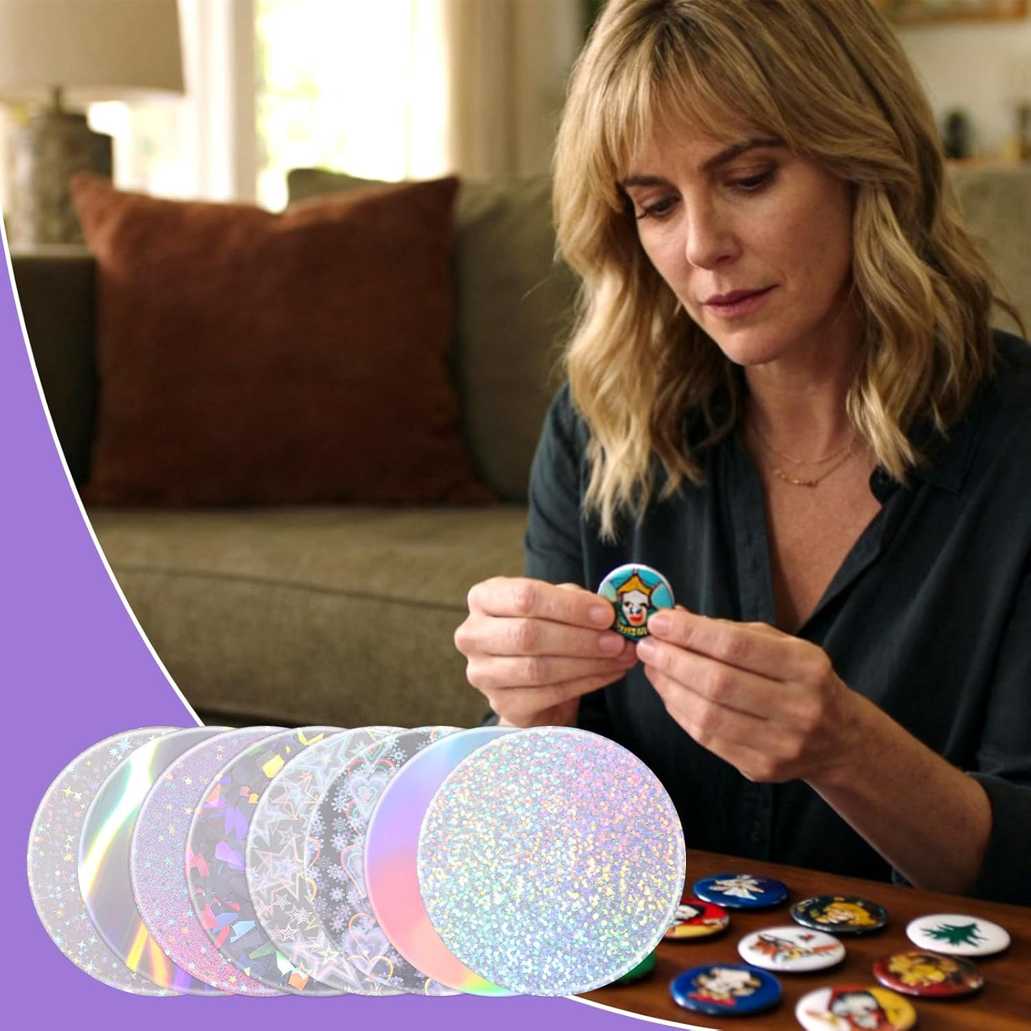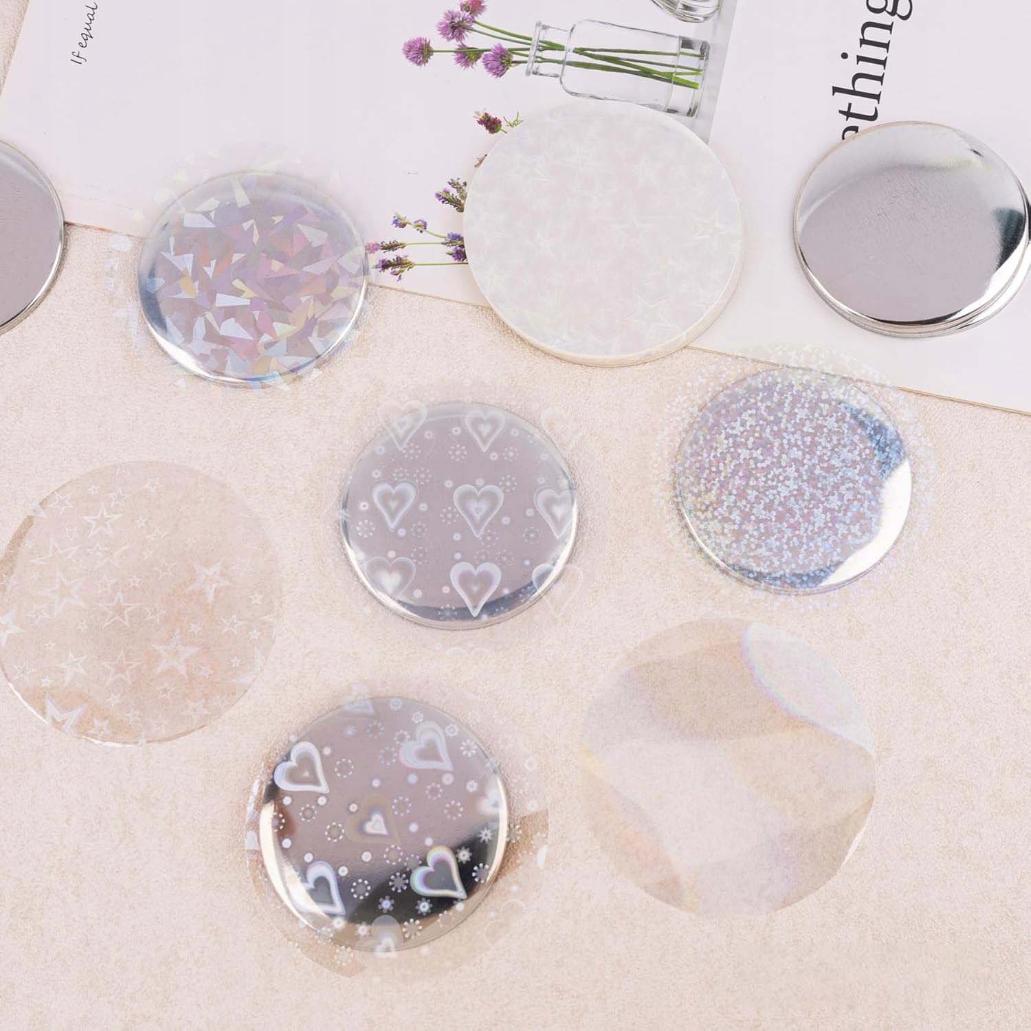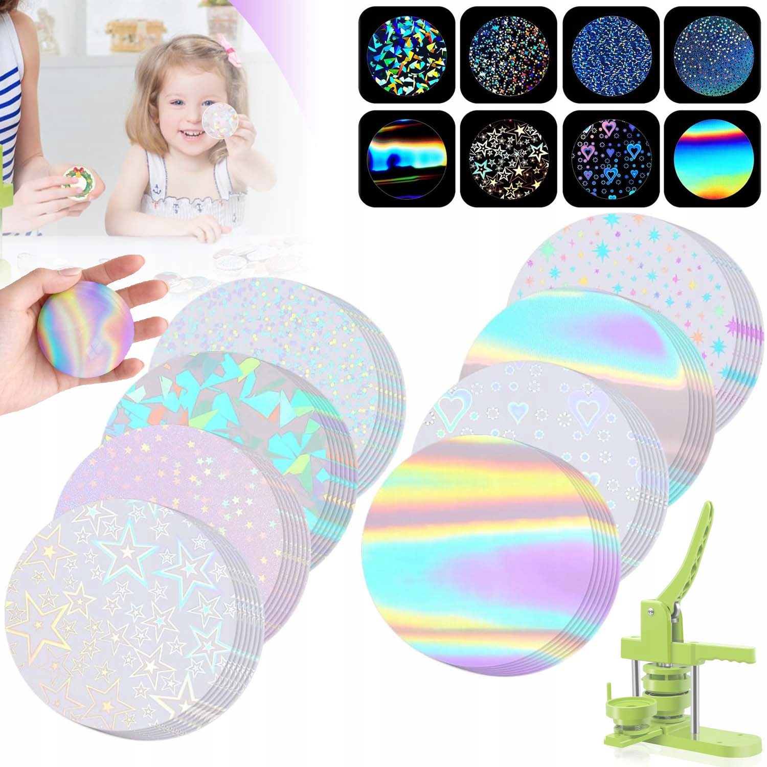 Наш набір містить 200 лазерних захисних плівок, кожна з яких має 8 привабливих візерунків. Вони не потребують різання та сумісні з більшістю ґудзиків шириною 58 мм/2,28 дюйма, доступних на ринку, що полегшує створення унікальних персоналізованих значків і додає необмежену креативність вашим проектам DIY. Примітка: ці продукти є фольгою, а не наклейками. Перед покупкою перевірте розмір і сумісність.