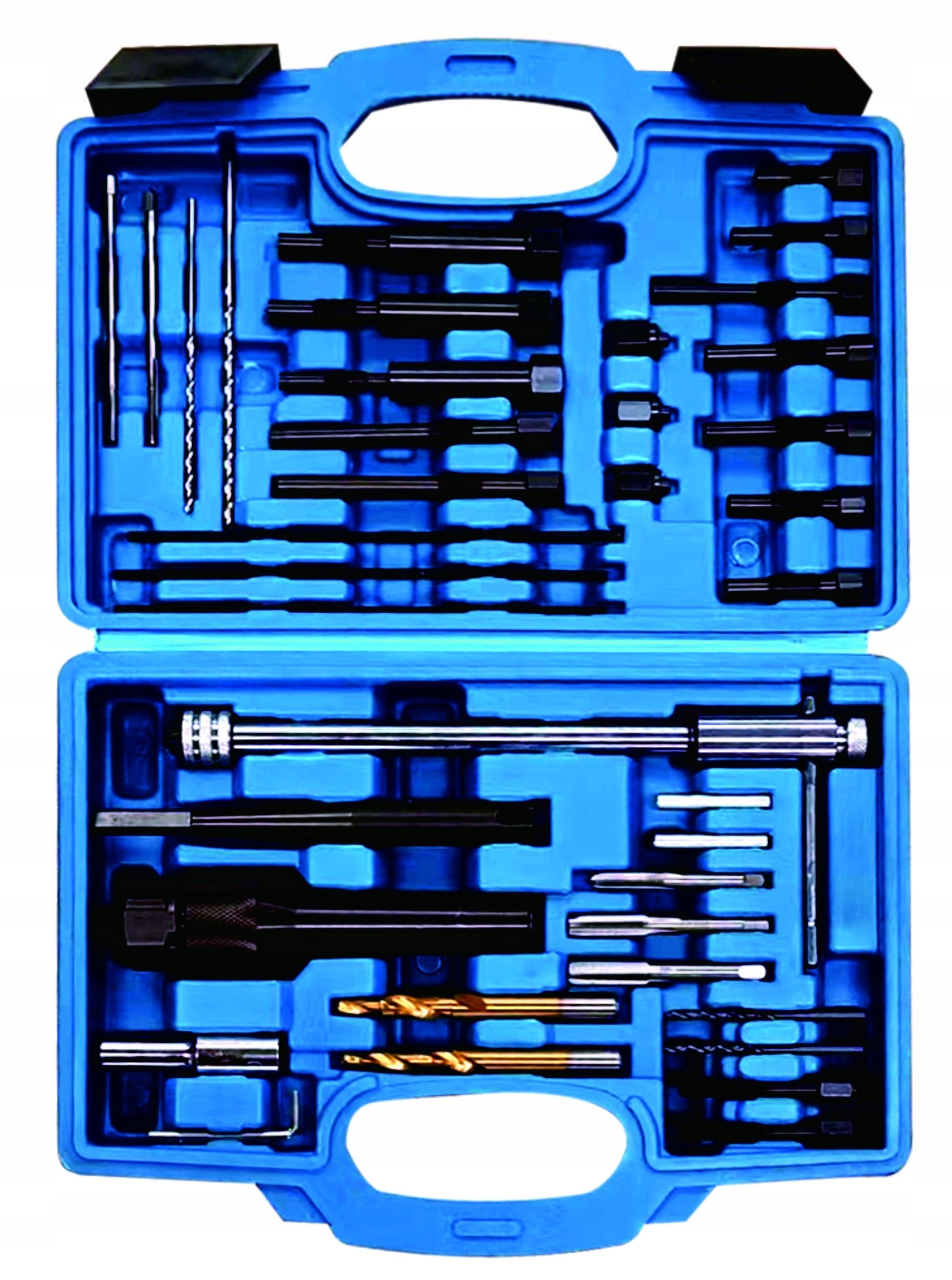 У набір входять: фрези для розсвердлювання свічки запалювання, свердла, мітчики, свічковий екстрактор, тріскачка, гніздо для зняття електродів.