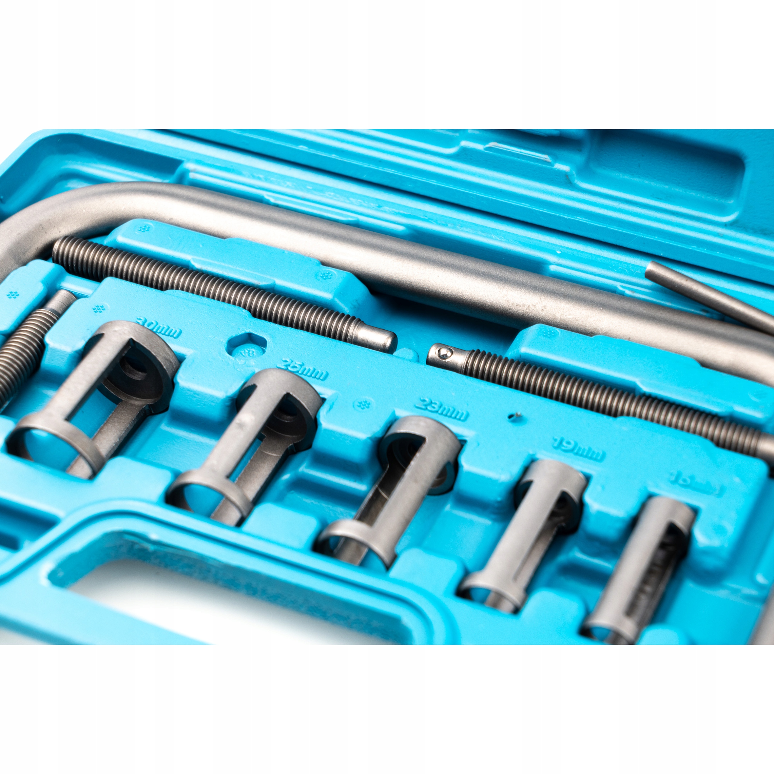 - Розміри вкладишів 16-13,5 мм Ці вкладиші забезпечують стабільне та рівномірне стиснення пружин під час розбирання, що є вирішальним для безпечної та ефективної роботи.
