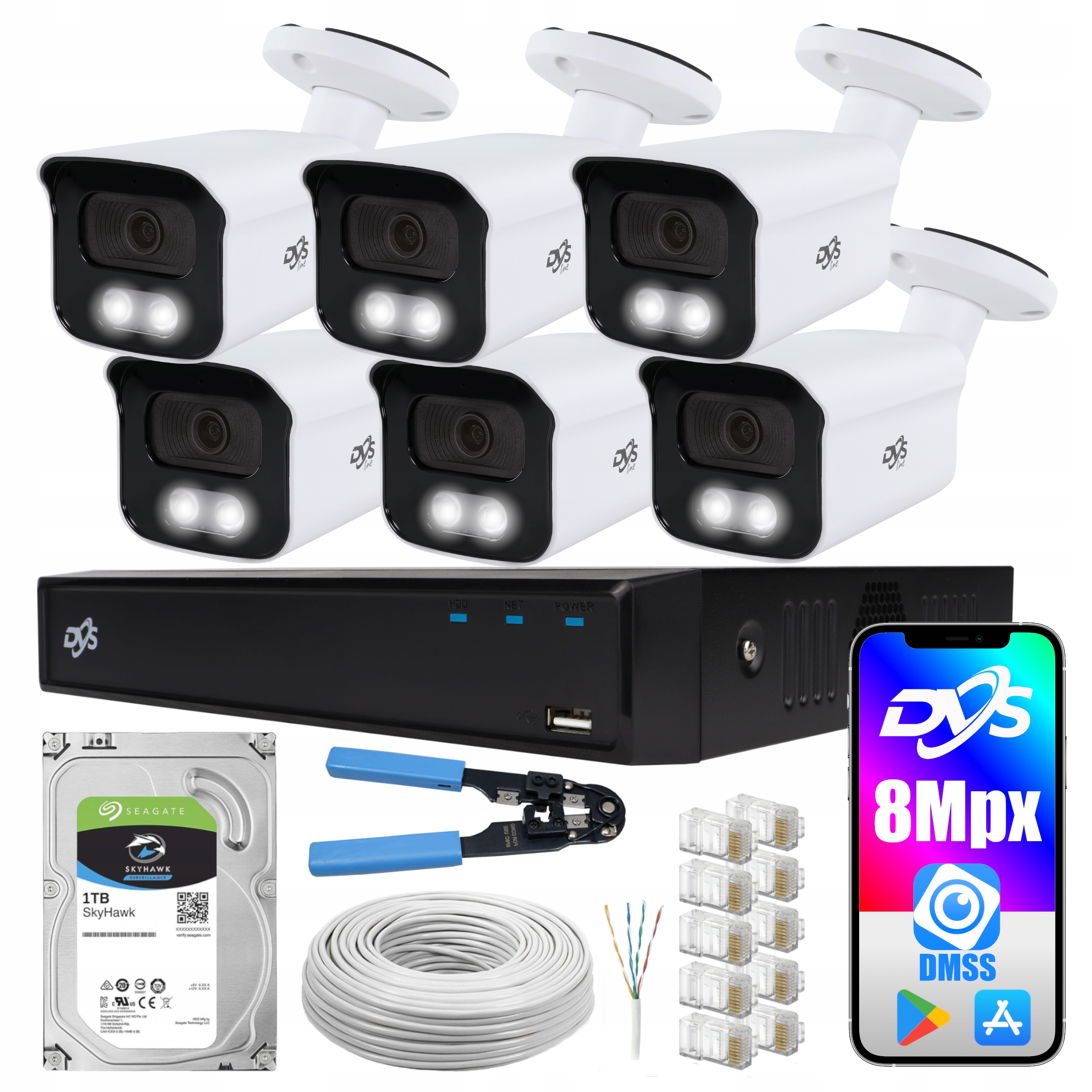 НАБІР ДЛЯ ЗОВНІШНЬОГО IP-МОНІТОРИНГУ 6 КАМЕР 8MPX 4K З POE LED ПОВНОКОЛЬОРОВИЙ