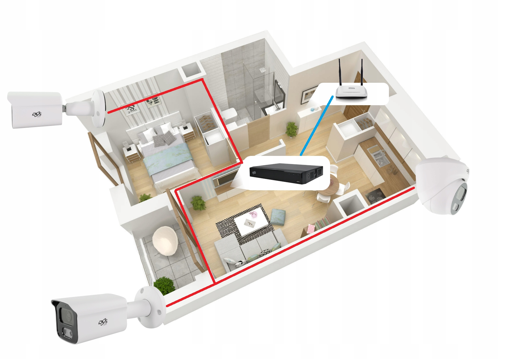 Набір має функцію розширеного аналізу руху. Просто встановіть зони моніторингу та чутливість виявлення, щоб переконатися, що жоден рухомий «об’єкт» не вислизне від нашої уваги. Камери також аналізують спостережувану сцену та здатні виявляти спроби саботажу, такі як: зміна фокусу, блокування зображення, зміна кута огляду. Це підключення означає, що ви нічого не пропустите - пристрій автоматично надсилає сповіщення прямо на ваш смартфон, коли виявлено рух!