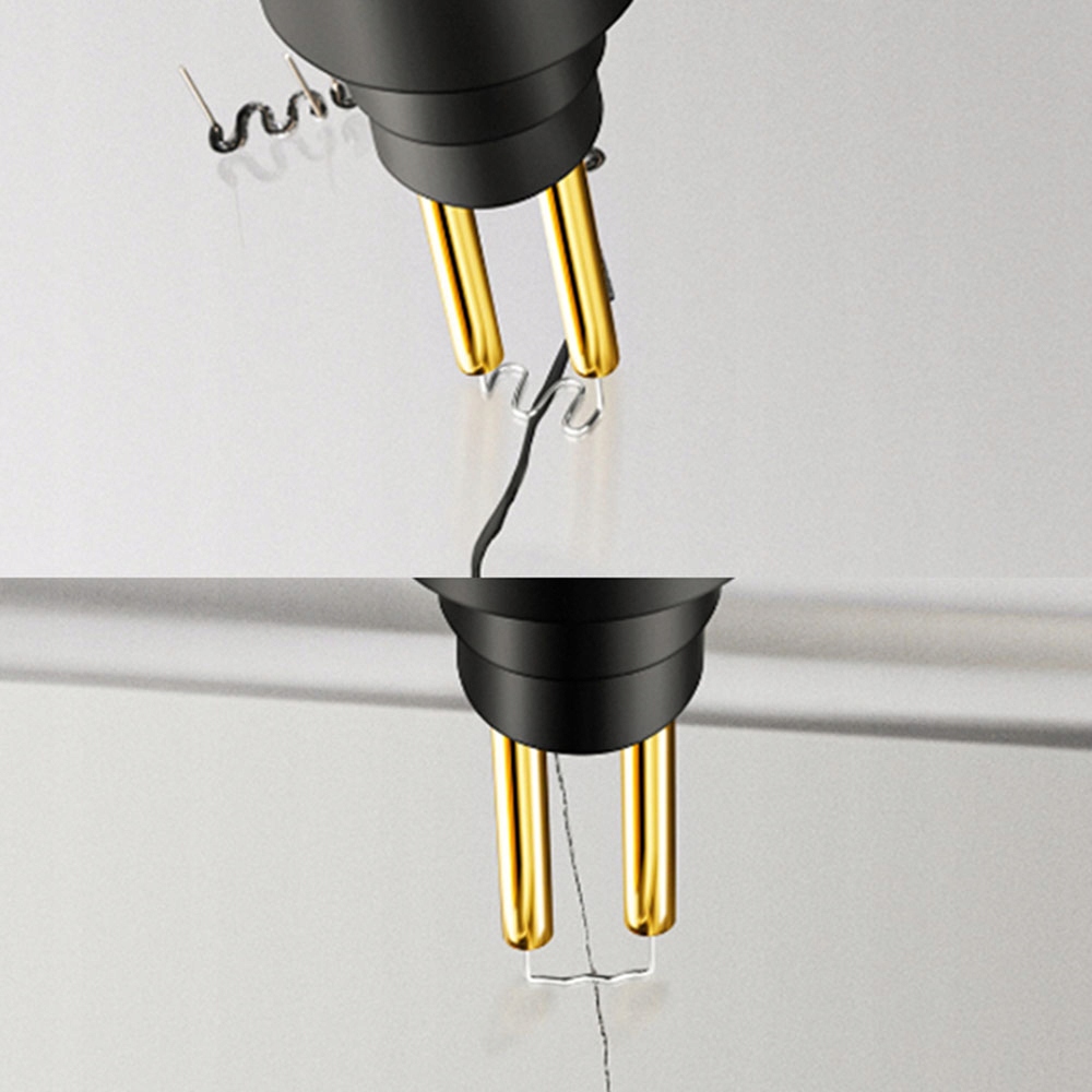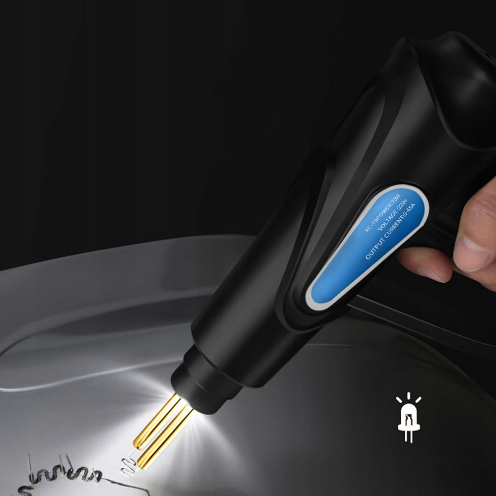 Зварювальний апарат для ремонту пластику оснащений яскравим світлодіодним ліхтарем, який дозволяє безпечно працювати в умовах слабкого освітлення, а яскраве світлодіодне світло може допомогти в темних місцях, наприклад під автомобілями. Полегшена конструкція дозволяє чітко побачити тріснуту частину бампера.