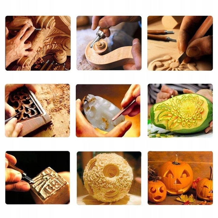 【Професійні інструменти для різьблення по дереву】. Набір професійних ножів для різьблення по дереву — найкращий вибір для любителів різьби по дереву. Вирізайте власні слова або візерунки на дереві, щоб зробити його унікальним. Дуже підходить для м’яких порід деревини, таких як клен, сосна, липа, тополя та гарбуз. Незалежно від того, початківець ви чи професіонал, це ідеальний інструмент для різьблення по дереву