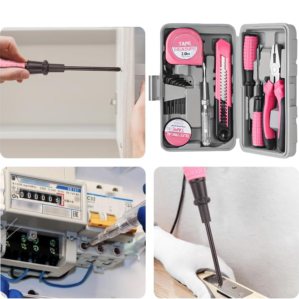 НАБІР ДОМАШНЬОГО ІНСТРУМЕНТУ 13 ШТ. РОЖЕВИЙ - КИШЕНЬКА ДЛЯ РЕМОНТУ