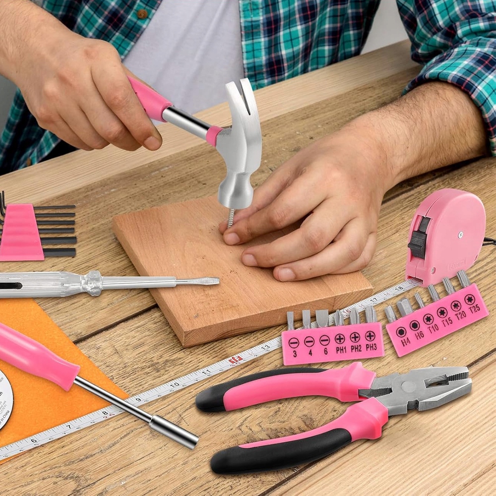 🛠️Це милий і практичний набір, який містить базові домашні інструменти майже для будь-якого дрібного ремонту. Він виготовлений із міцного металу та пластику, а металеві частини оброблені проти іржі для довговічності.