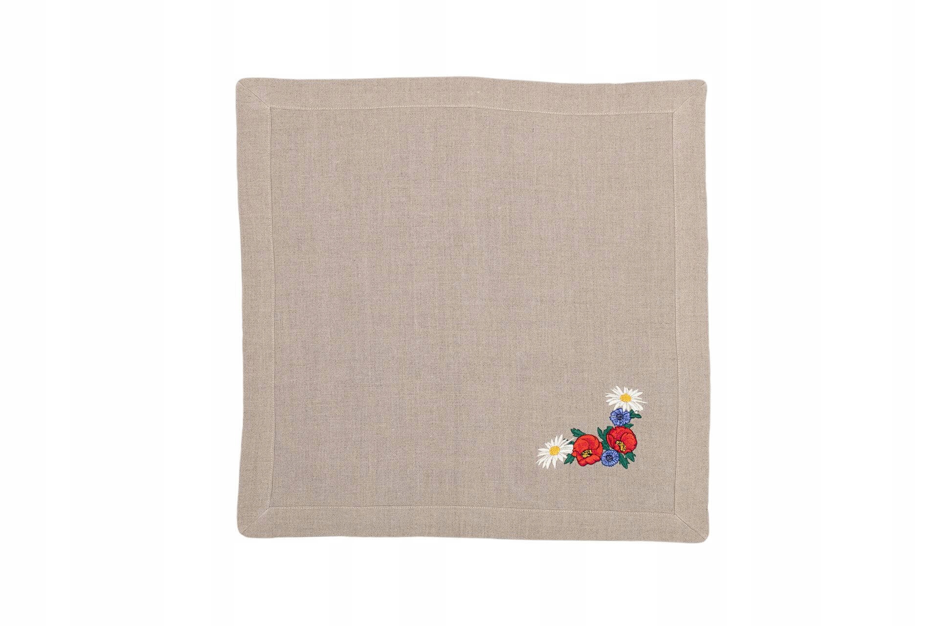 - 4 лляні серветки зі смужкою та вишивкою - натурального кольору льону