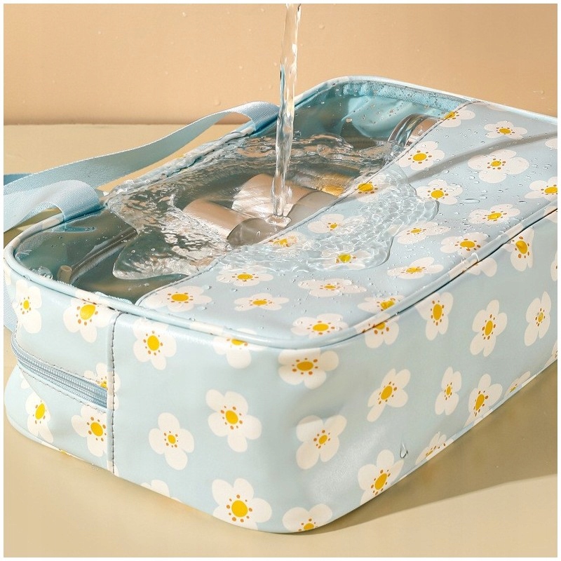 НАБІР ДОРОЖНЬОЇ КОСМЕТИЧКИ З 3 КОМПЛЕКТІВ - СИНЯ З РОМАШКАМИ