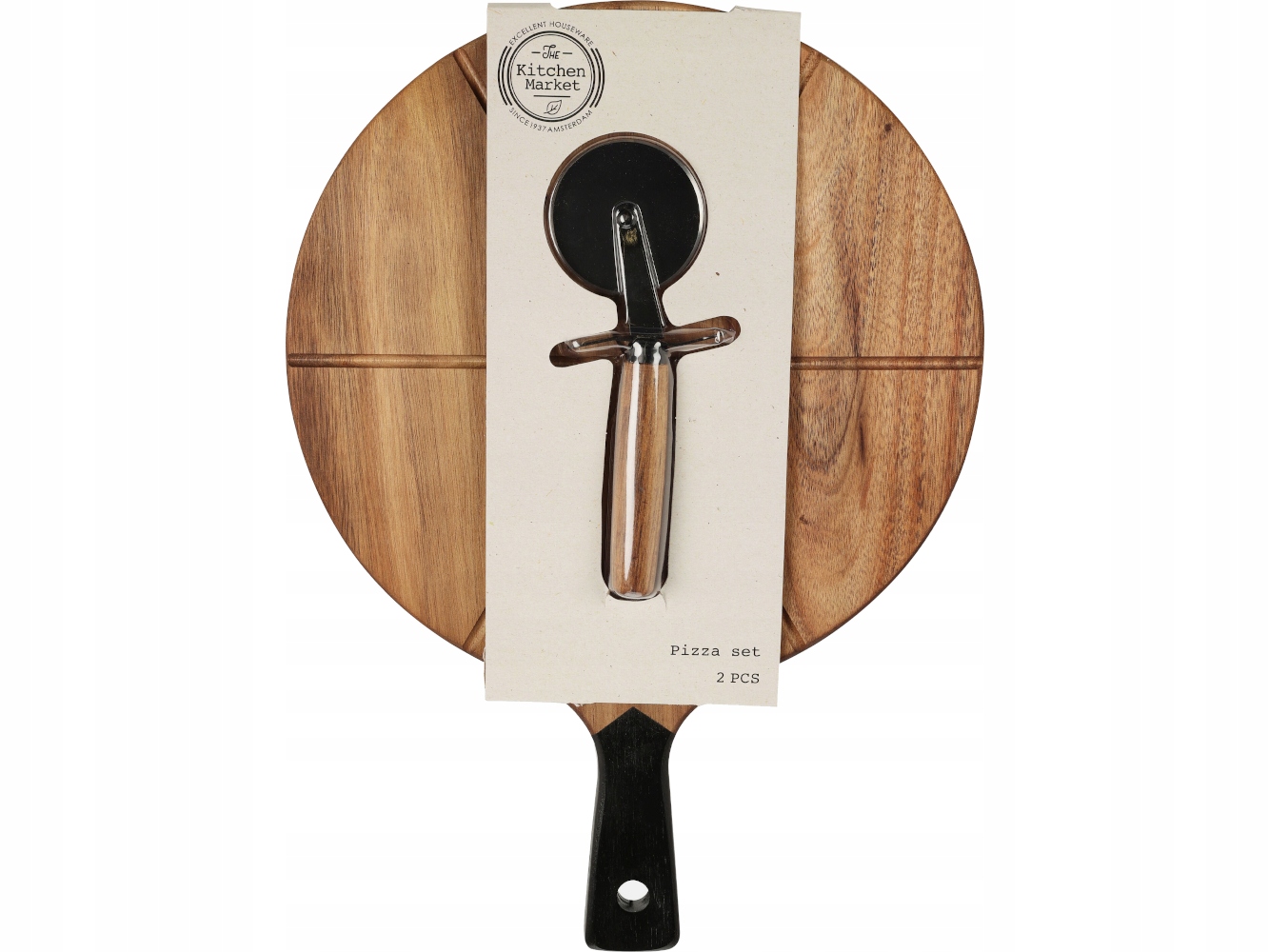 НАБІР Дошка кругла 30 см + НІЖ ДЛЯ ПІЦИ - ДЕРЕВО АКАЦІЇ