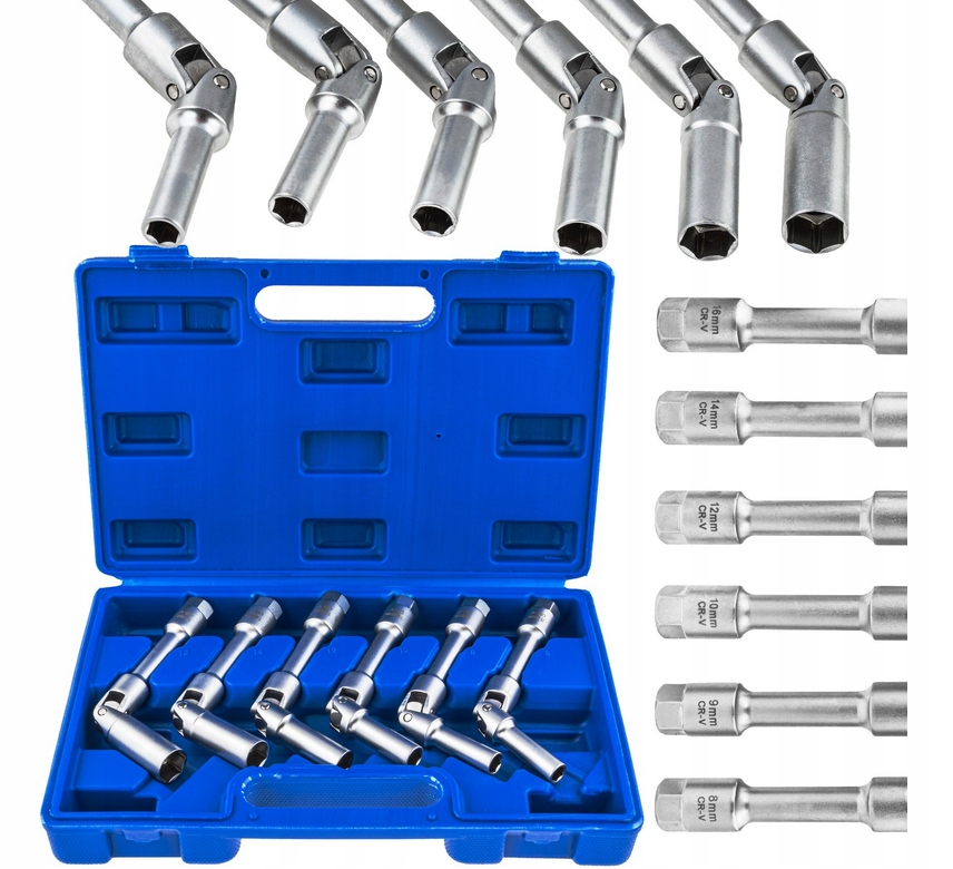 НАБІР ДОВГИХ ГАЙКОВИХ КЛЮЧІВ ДЛЯ СВІЧОК НАКАЛУ З ШАРНІРОМ 3/8" 6 ЕЛЕМЕНТІВ.