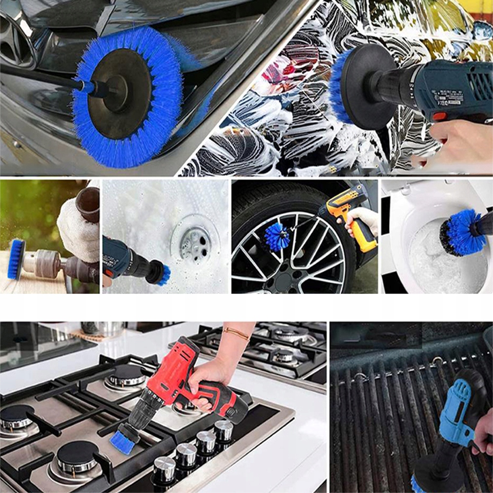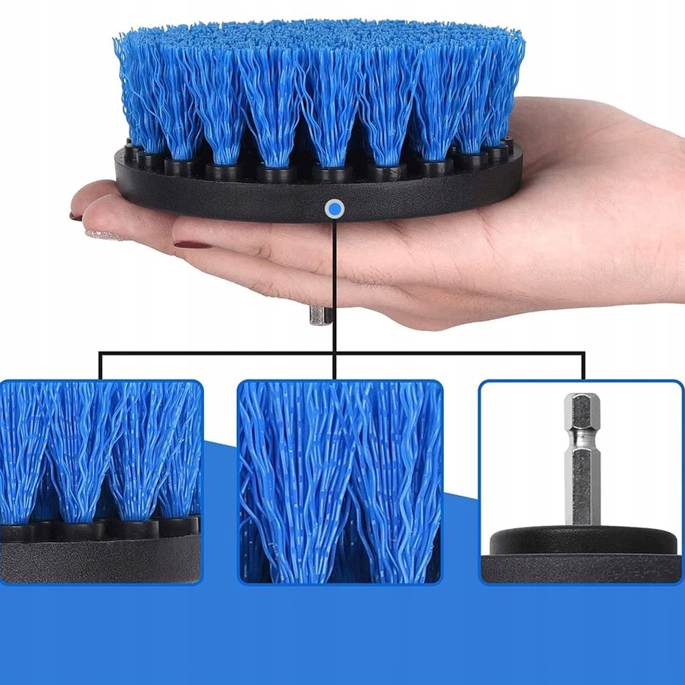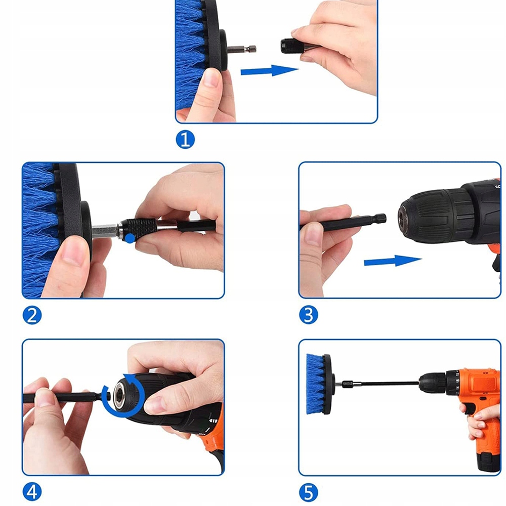 - Набір насадок для свердла Він поставляється з 4 щітками різних розмірів, 2"/3,5"/4"/5". Відповідно до предметів, які ви хочете очистити, ви можете вибрати відповідну щітку для чищення.