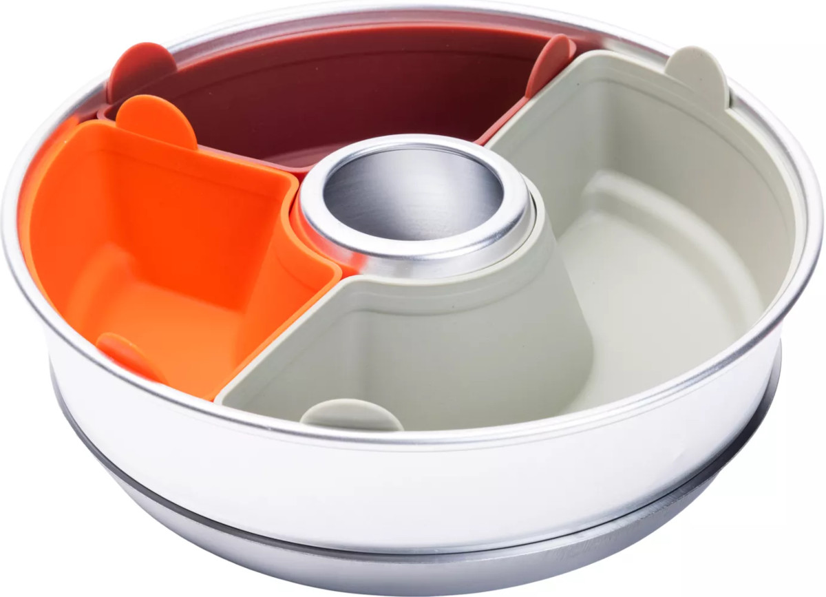 - Round aluminum form with a hole in the middle is filled with more or less half of the ingredients or dough and allows for even heat propagation