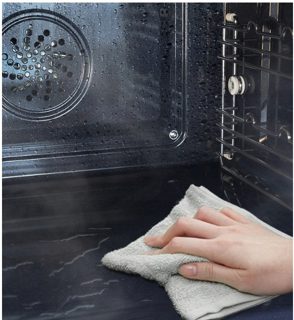 Очищення парою — швидкий і зручний спосіб, який не потребує використання миючих засобів. Щоб ефективно очистити духовку, просто налийте всередину трохи води та виберіть функцію очищення парою, яка ефективно розчинить бруд. Зрештою, бруд можна легко видалити за допомогою тканини.