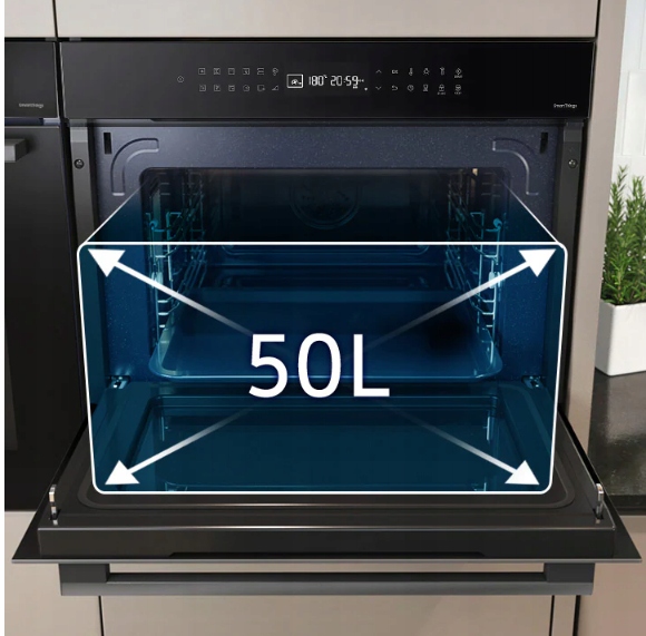 Мікрохвильова піч має об’єм до 50 літрів і має висоту 45 см, тому в ній можна легко розмістити їжу у дуже великому посуді. У ньому ви легко зможете приготувати обід для всієї родини або вечерю для друзів!