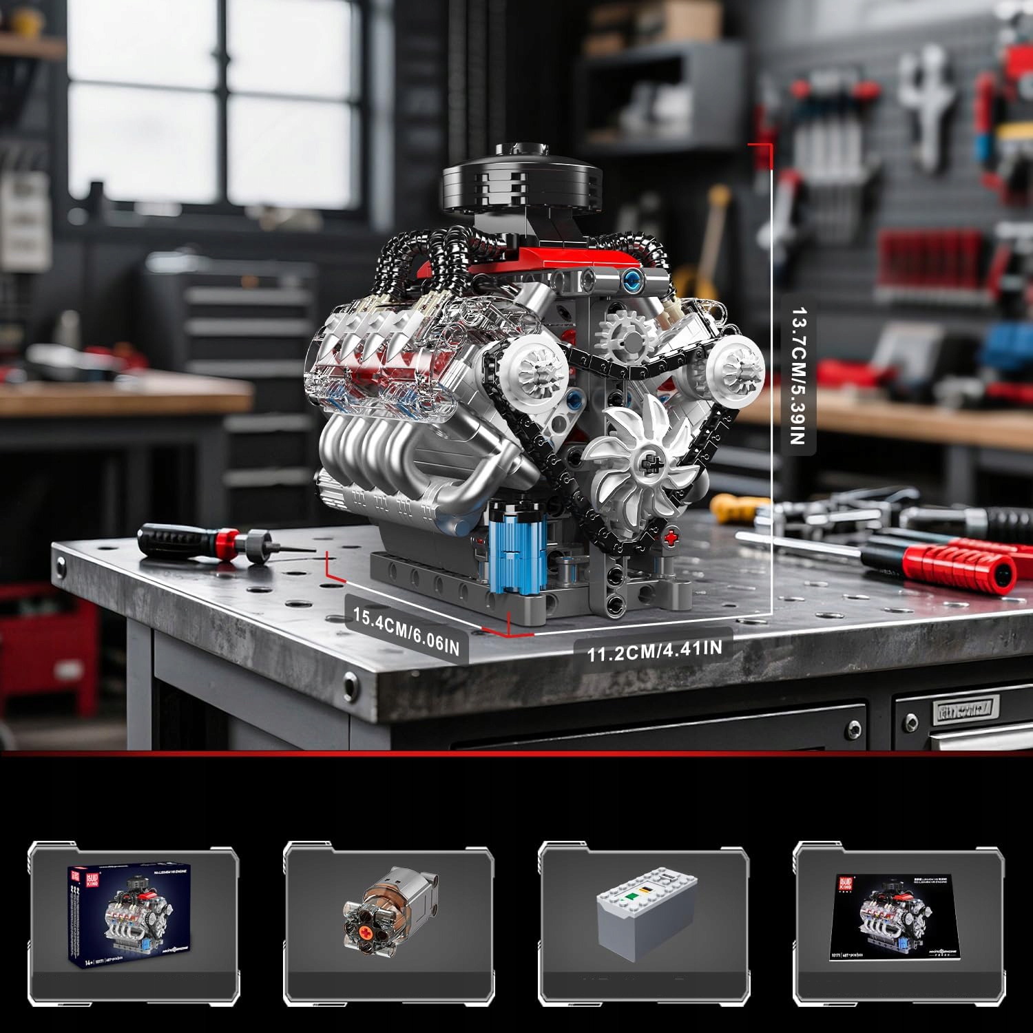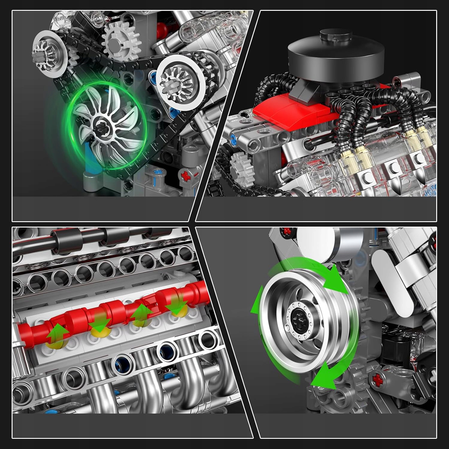 ➤ Прозорий дизайн циліндра, динамічна видимість: уявіть, як ви збираєте прецизійний блок двигуна V8 своїми руками. Завдяки унікальній прозорій конструкції циліндра ви можете візуально спостерігати внутрішні деталі двигуна, рух поршня вгору і вниз, переміщення клапанів і відтворити процес роботи двигуна. Випробовуйте практичні навички, розвивайте творчість, відкривайте таємницю механіки, як у комплекті блоку двигуна V8.