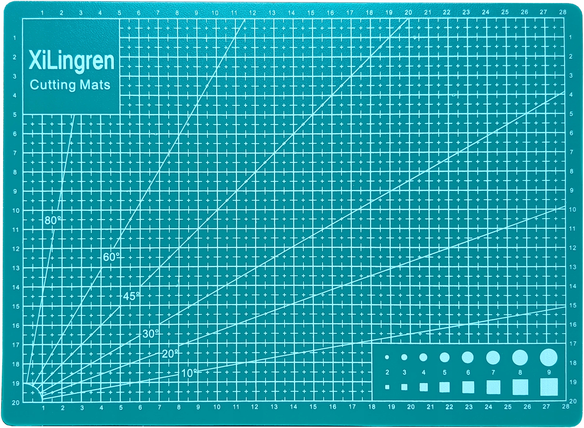 Килимок має позначені сантиметри, які допомагають виміряти ідеальний розмір. Він також має напрямні для вимірювання кутів, необхідних для вирізання геометричних фігур.
