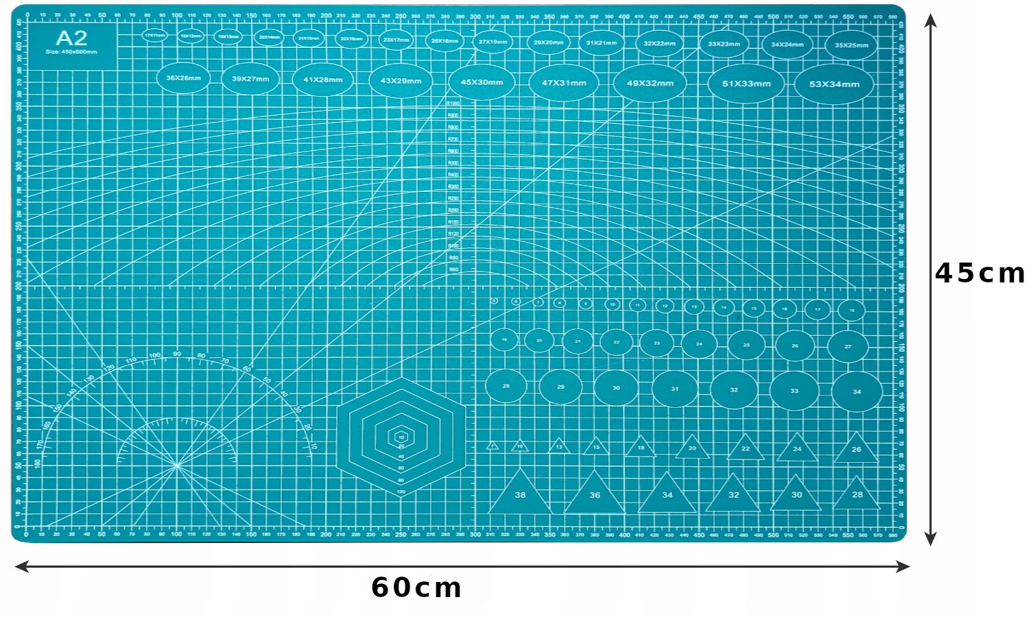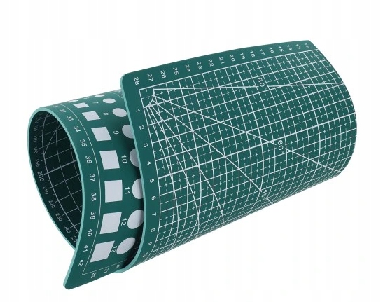 Килимок має позначені сантиметри, які допомагають виміряти ідеальний розмір. Він також має напрямні для вимірювання кутів, необхідних для вирізання геометричних фігур.