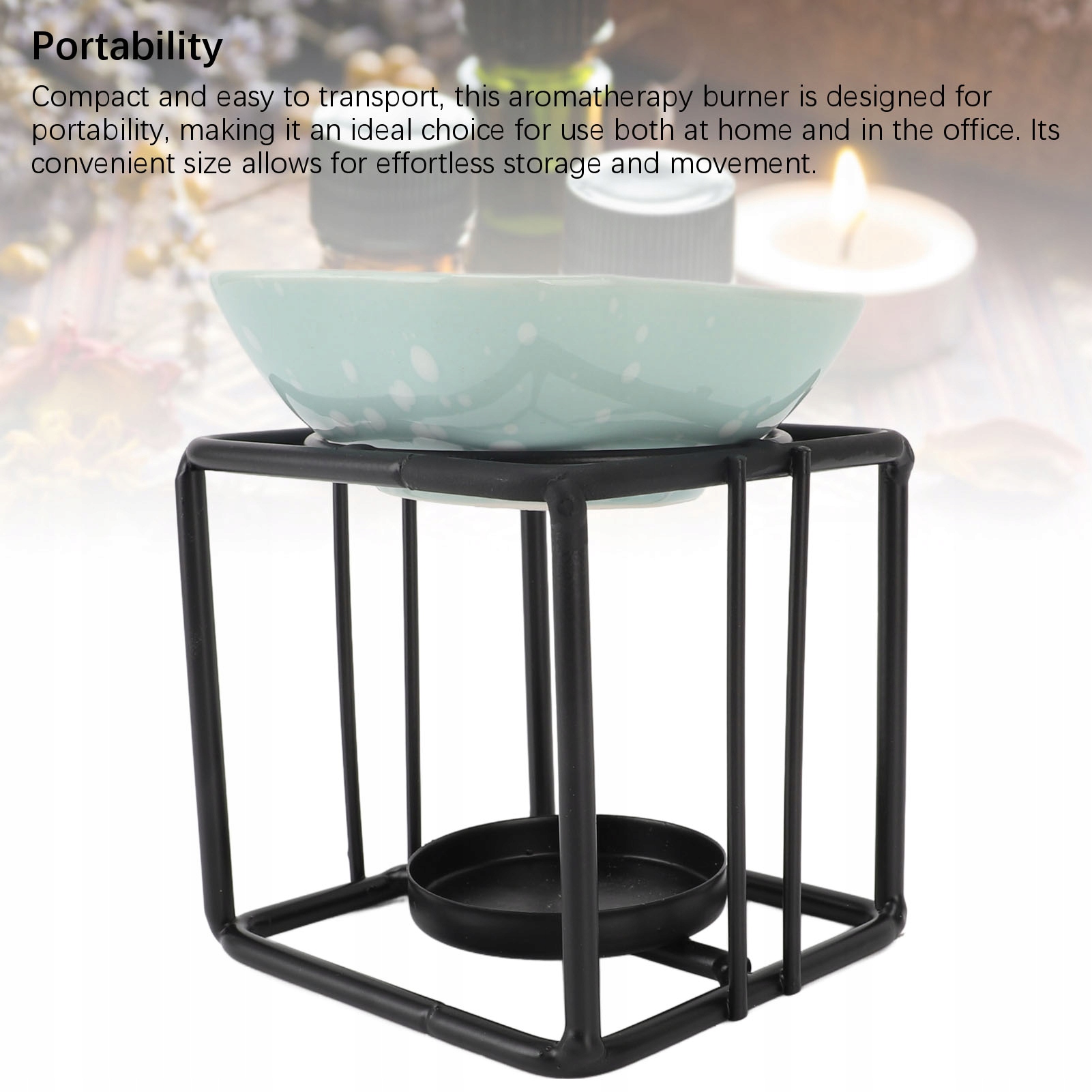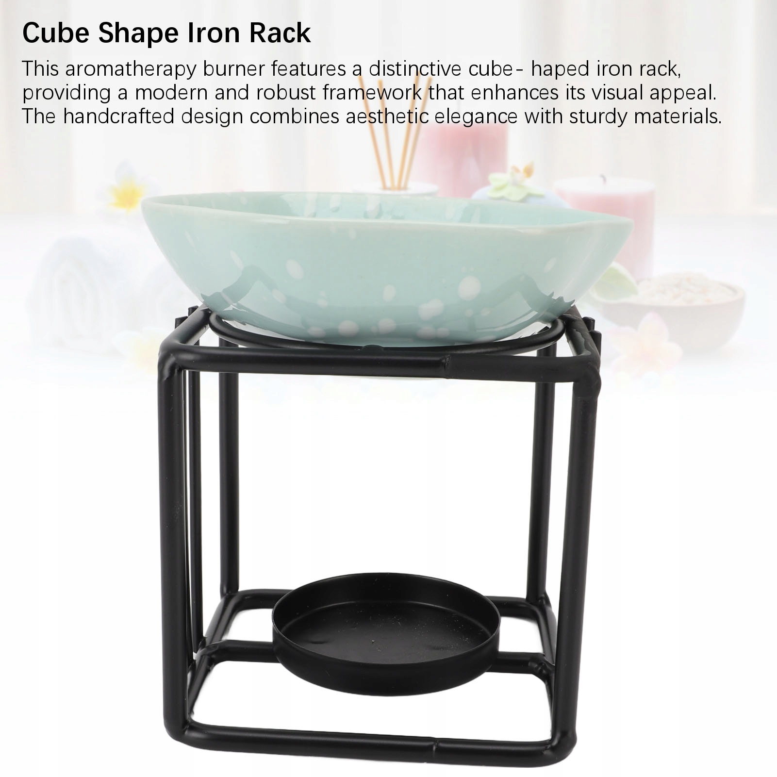 1. Фігурна залізна підставка: цей ароматерапевтичний пальник має характерну кубічну залізну підставку, що забезпечує сучасну та міцну раму, яка покращує її візуальну привабливість. Конструкція ручної роботи поєднує естетичну елегантність із міцними матеріалами.