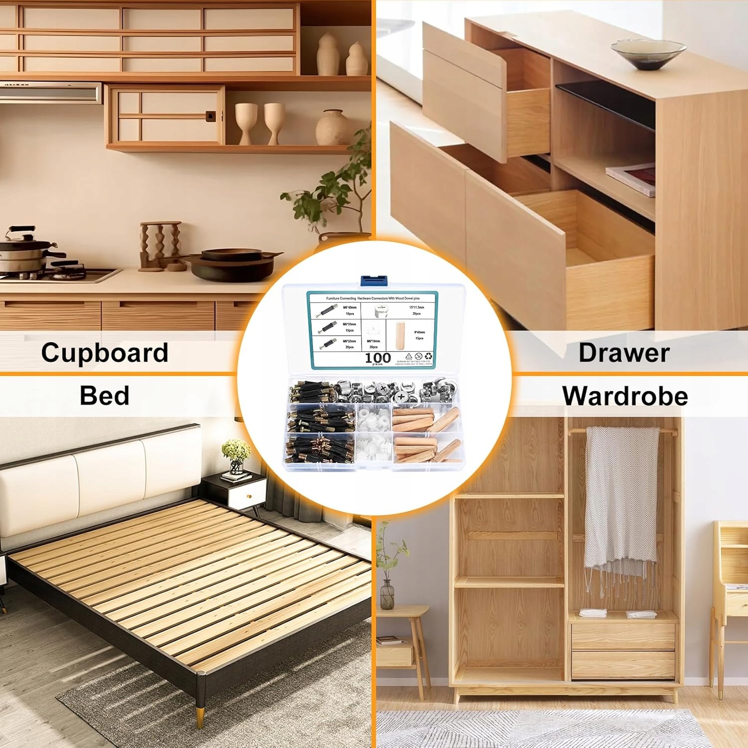 ✨ НАБІР ЕКСЦЕНТРИЧНИХ МЕБЛЕВИХ КОНЕКТОРІВ 3 В 1 НАБІР 100 ШТИРІВ ГВИНТІВ ✨