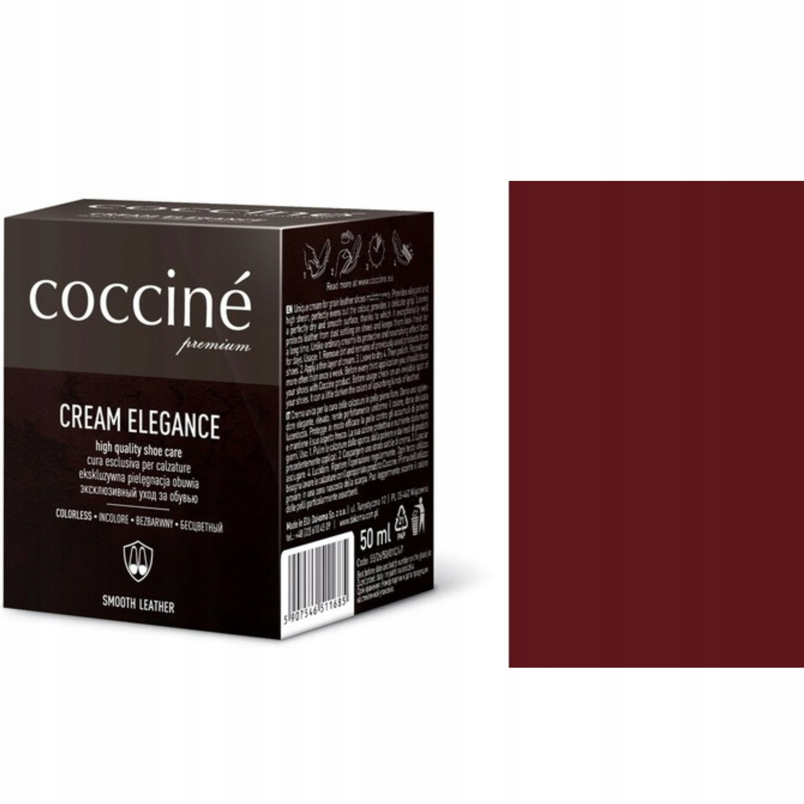 Coccine Cream Elegance - бордовий крем для шкіри обов’язковий для тих, хто цінує елегантність і увагу до деталей. Ідеально підходить для взуття, сумок, ременів та інших аксесуарів з гладкої шкіри.
