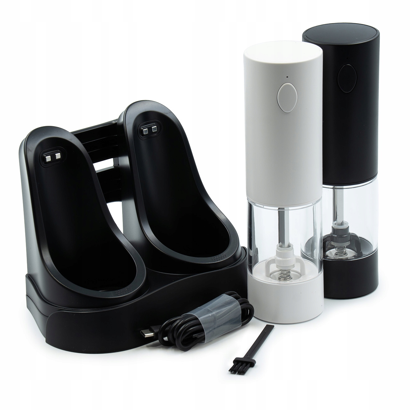 ➡️ Корпус обох млинків виготовлено з міцного високоякісного пластику та PMMA, тобто міцних матеріалів, які забезпечують довговічність продуктів навіть під час інтенсивного використання. У набір входить спеціально розроблена зарядна станція з вбудованою профільованою ручкою, яка підтримує м'ясорубки та служить базою для зберігання. Станція підключається за допомогою кабелю USB type C, який входить в комплект.