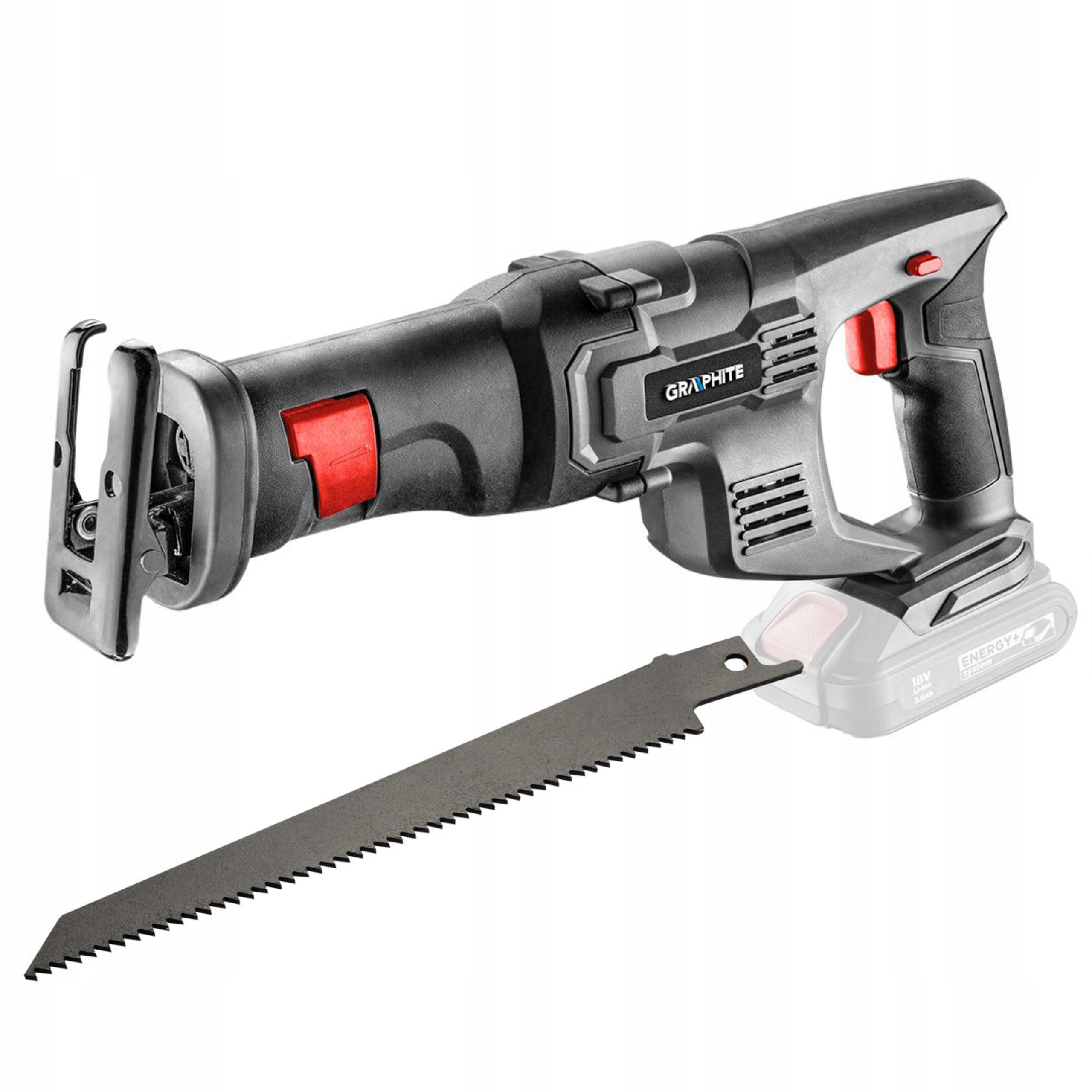 Шабельна пила GRAPHITE, сумісна з літій-іонними акумуляторами 18 В GRAPHITE Energy+, призначена для різання деревини, металу та пластику. Пила має двопозиційний тримач інструменту, призначений для швидкої заміни пилкових полотен без використання інструментів. Швидкість подачі пильного диска регулюється ступенем натискання на кнопку перемикача. Перемикач захищений від випадкового включення. Високоміцний шпиндель дозволяє працювати при великих навантаженнях. Пила має рухливу стоп-ножку, яка дозволяє змінювати кут атаки пильного полотна. Для безпеки та комфорту ручка покрита протиковзким матеріалом.