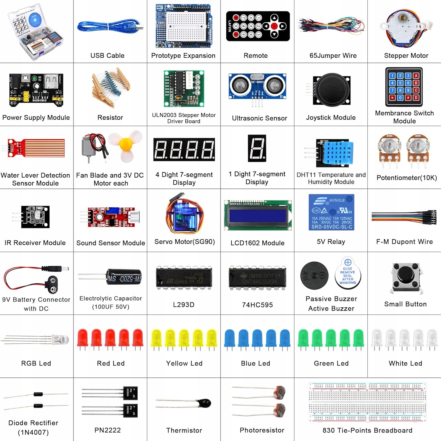 НАБІР ЕЛЕКТРОННИХ КОМПОНЕНТІВ ДЛЯ ARDUINO, UNO R3, PI + ІНСТРУКЦІЯ