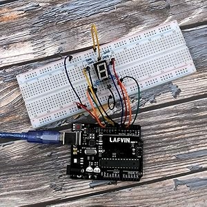 - 7-сегментний дисплей із загальним анодом Кожен сегмент дисплея складається зі світлодіода. Отже, коли ви його використовуєте, вам також потрібно використовувати резистор для обмеження струму.