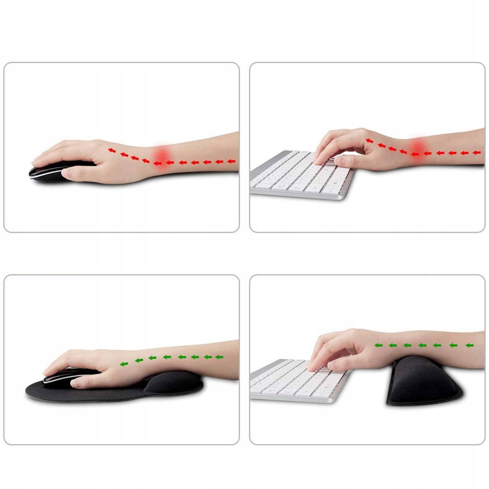 Набір ергономічних накладок для миші та накладок для зап’ястя забезпечує комфортнішу роботу. Якщо ви проводите багато часу за комп’ютером і часто працюєте з мишею, це може вплинути на ваші зап’ястя. Щоб уникнути надмірного навантаження на зап’ястя, вибирайте ергономічні килимки для миші та підставки для зап’ястя. Килимок для миші покритий спеціальним гладким матеріалом, який забезпечує дуже точне наведення миші. Він також чудово працює з будь-яким типом датчика.