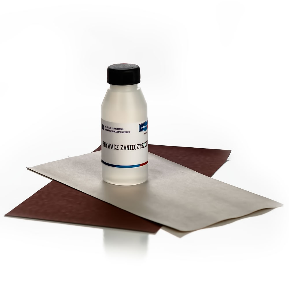 - Наждачний папір і знежирювач ємністю 100 мл Два види наждачного паперу. Аркуш сухого наждачного паперу більш грубої зернистості, який використовується для попередньої підготовки поверхні (видалення старого лаку). Аркуш паперу з дрібним гранулюванням, який використовується вологим для матування поверхні бампера перед нанесенням грунтовки.